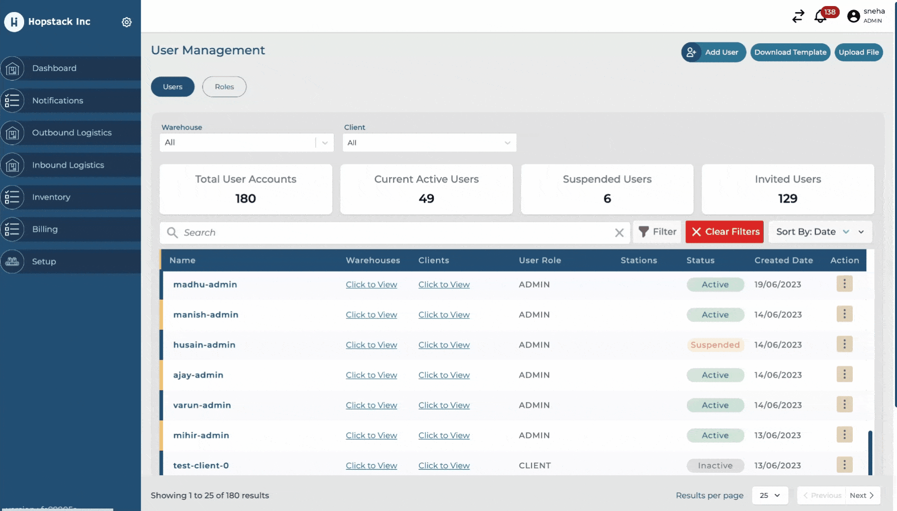 c. Addition of the 'Reset Password' button for each user. This function allows admins to promptly resend verification emails in scenarios where an invited user may no longer have access to the original email or when the initial Hopstack login link has expired.