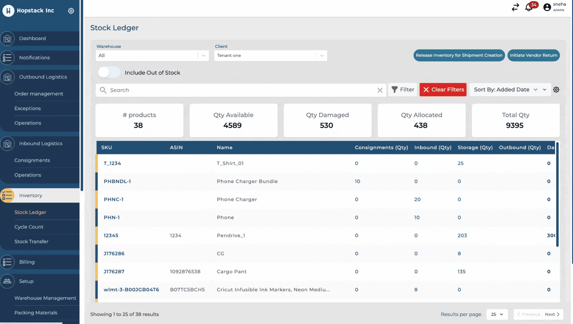 Admins now have the ability to take action on items in the damaged status of the available stock. Take action directly from the platform by choosing to "Move to Stock" or "Discard".