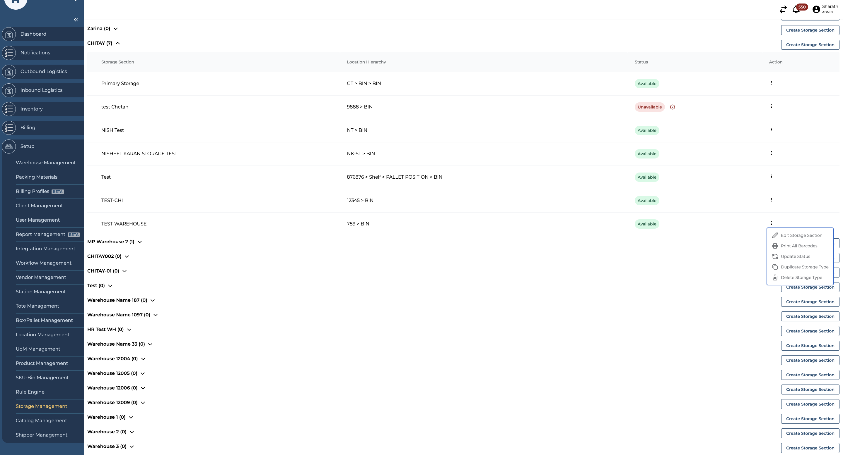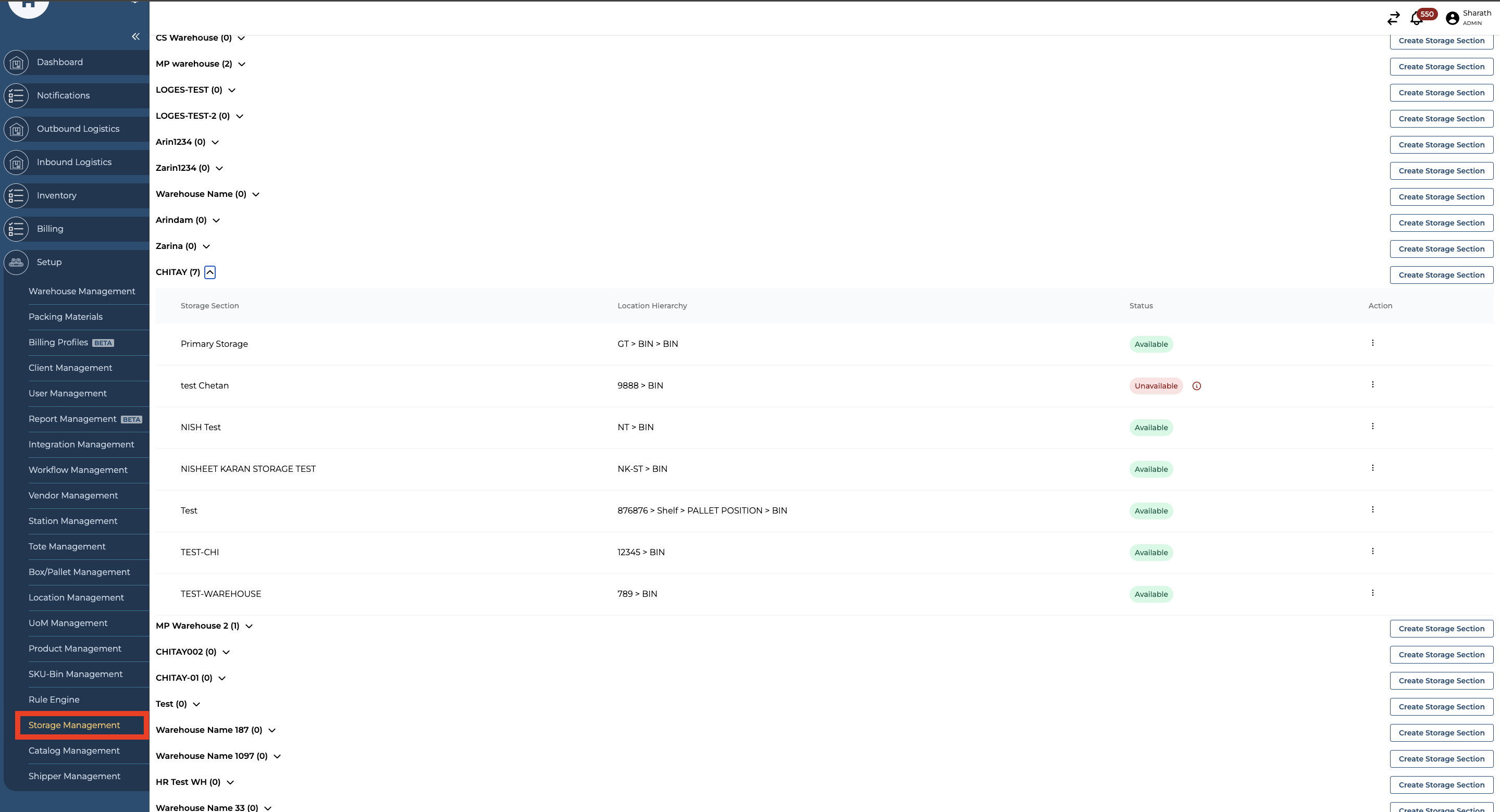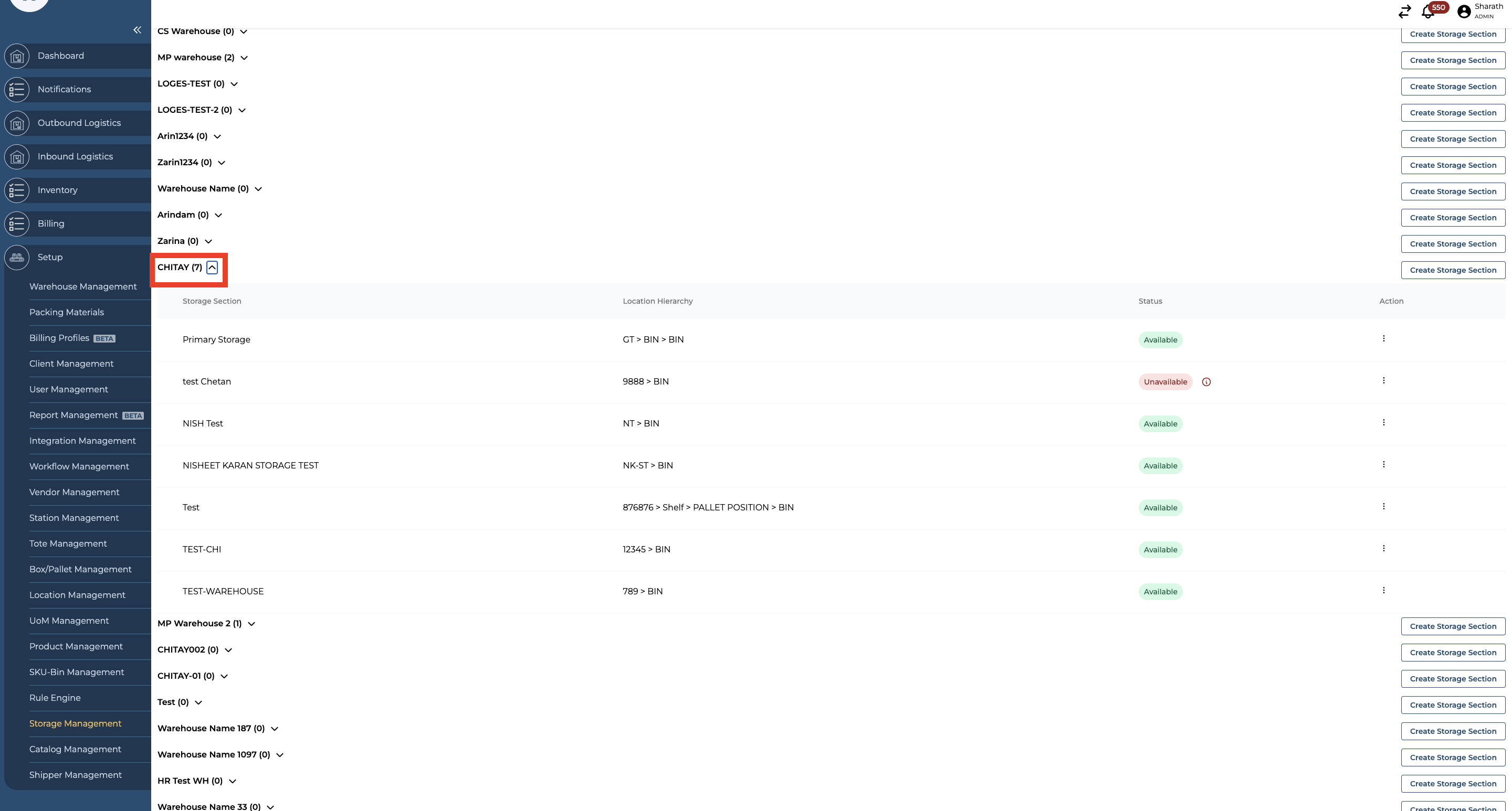 Navigate to the Storage Management section under the Setup option from the side menu on the Hopstack Dashboard