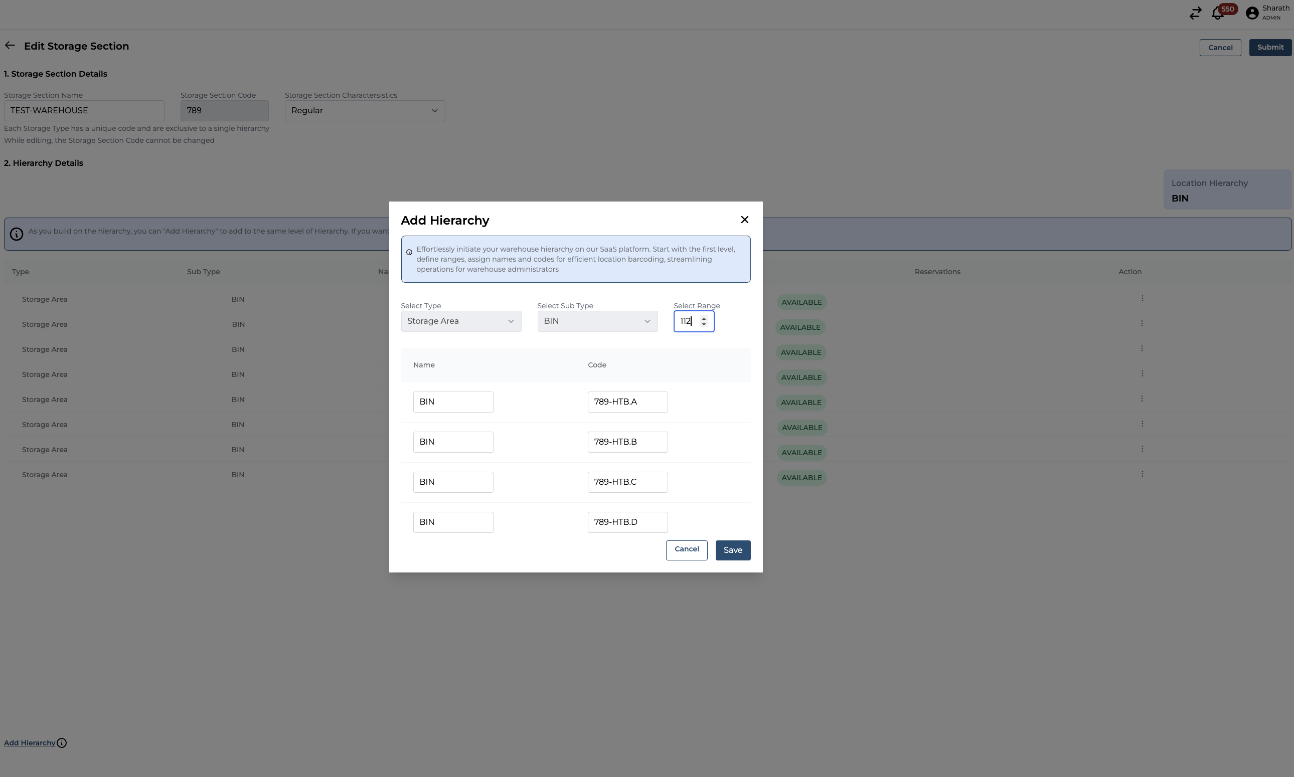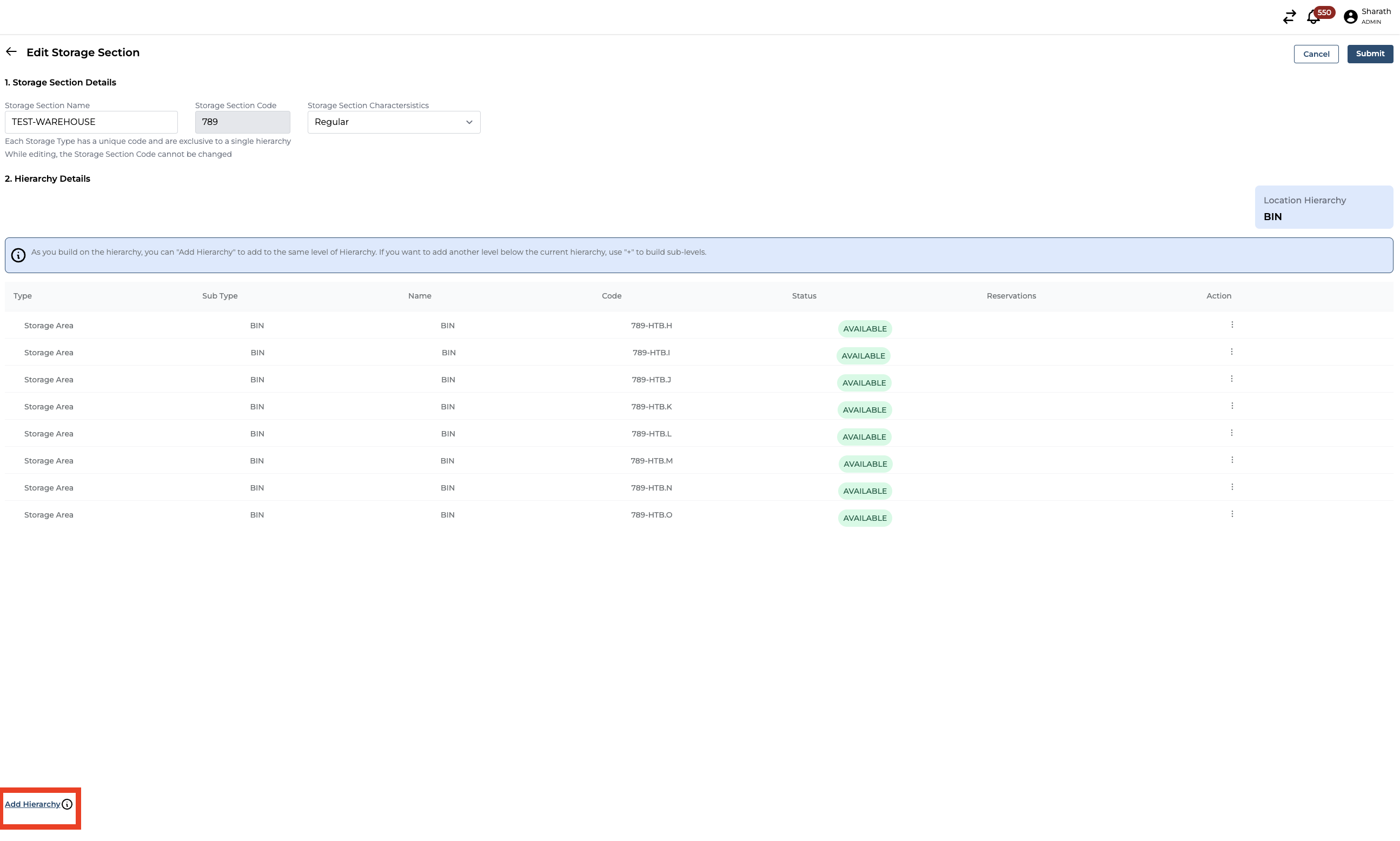 Select a Storage Section and click on edit Storage Section