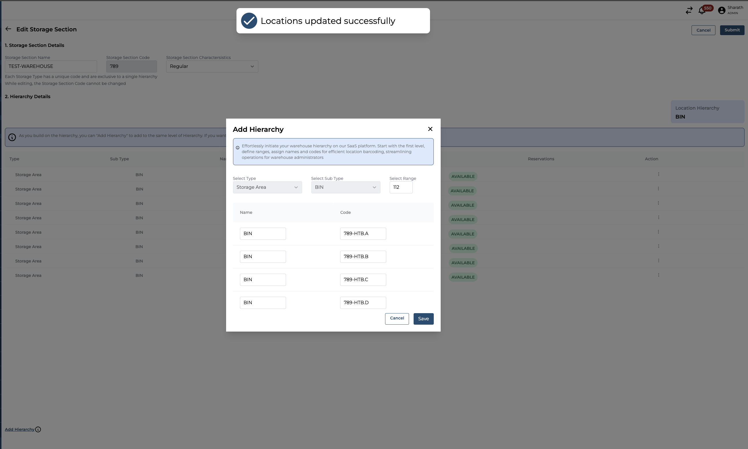 You will see a successful Notification message stating “Locations updated Successfully”
