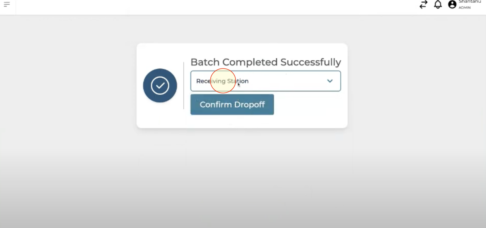 Upon successful batching, a prompt will appear to select the drop-off station.
