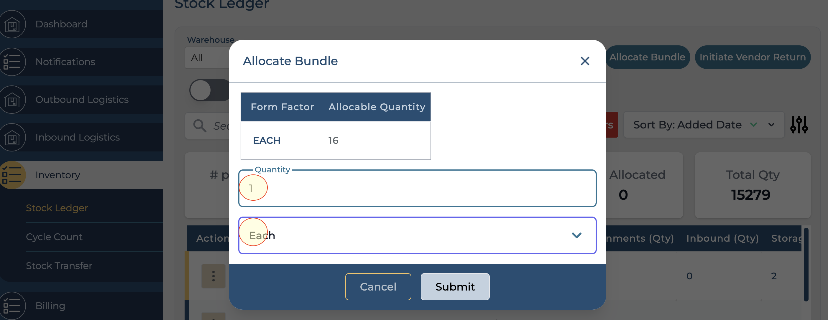 The system will only allow you to create the number of bundles based on the allocable inventory, so choose the number of bundles and specific form factor.