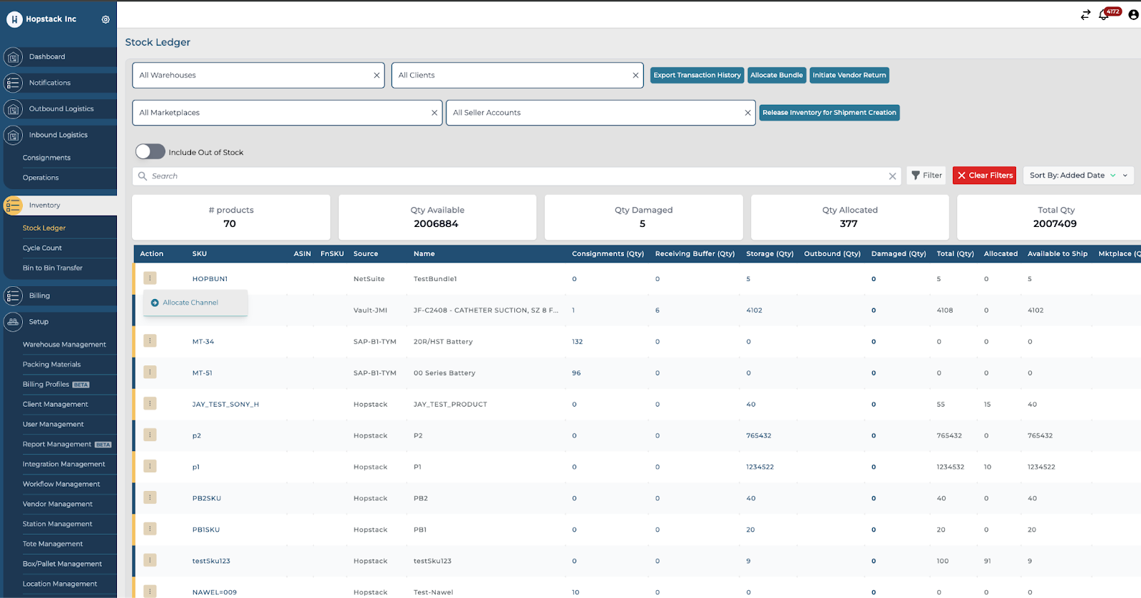 Channel Allocation in the Hopstack platform enables users to transfer inventory between different SKUs, catering to scenarios where products are sold on various platforms, such as Amazon, Shopify, eBay, etc…