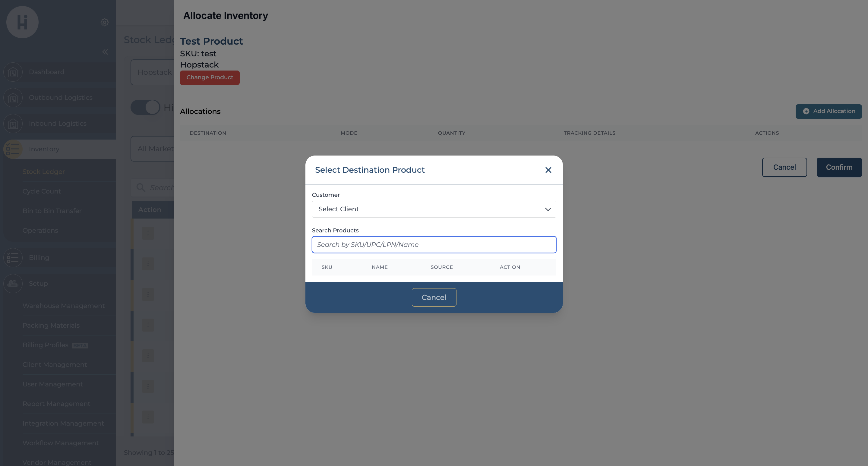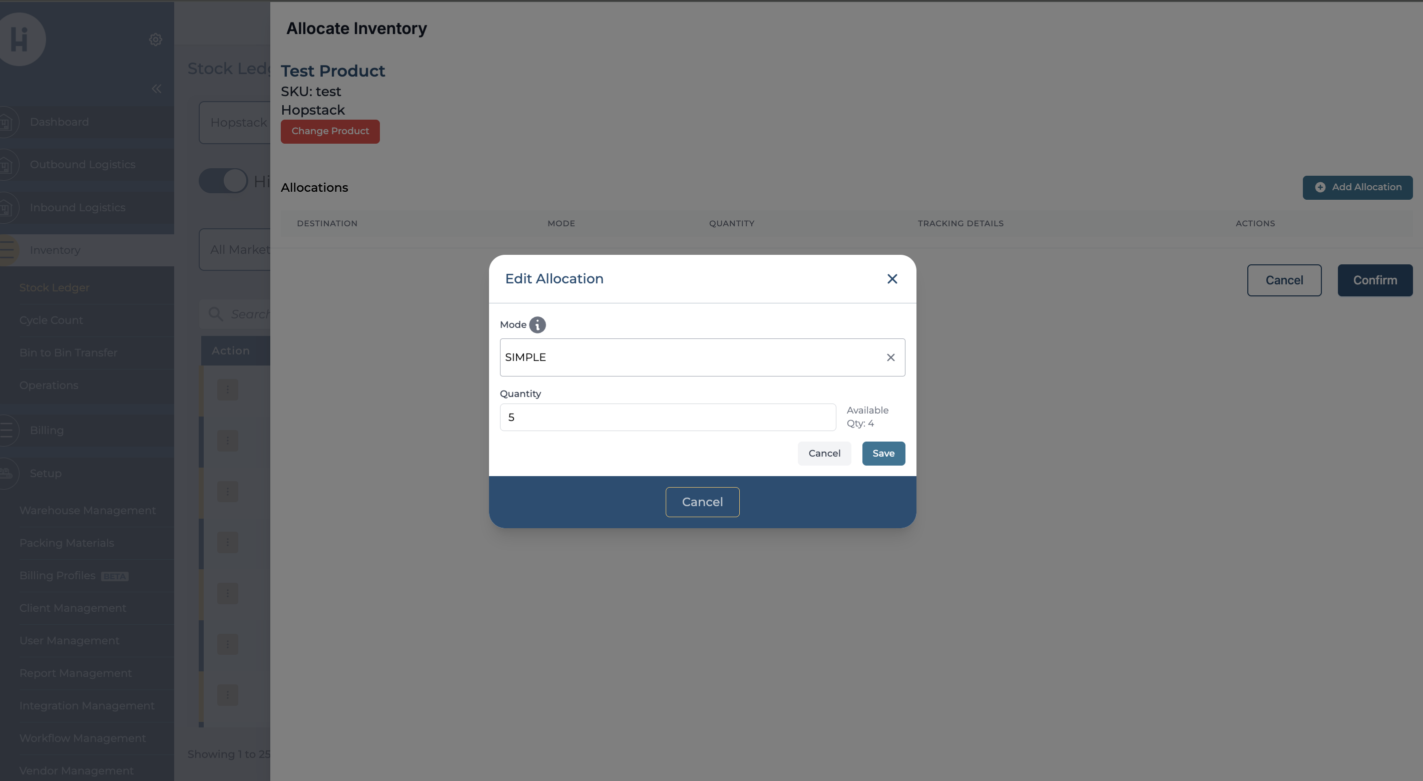 Allocating Inventory in the Hopstack platform enables users to transfer inventory between different SKUs with identifiers, so that the user can efficiently manage and distribute inventory with accurate tracking.