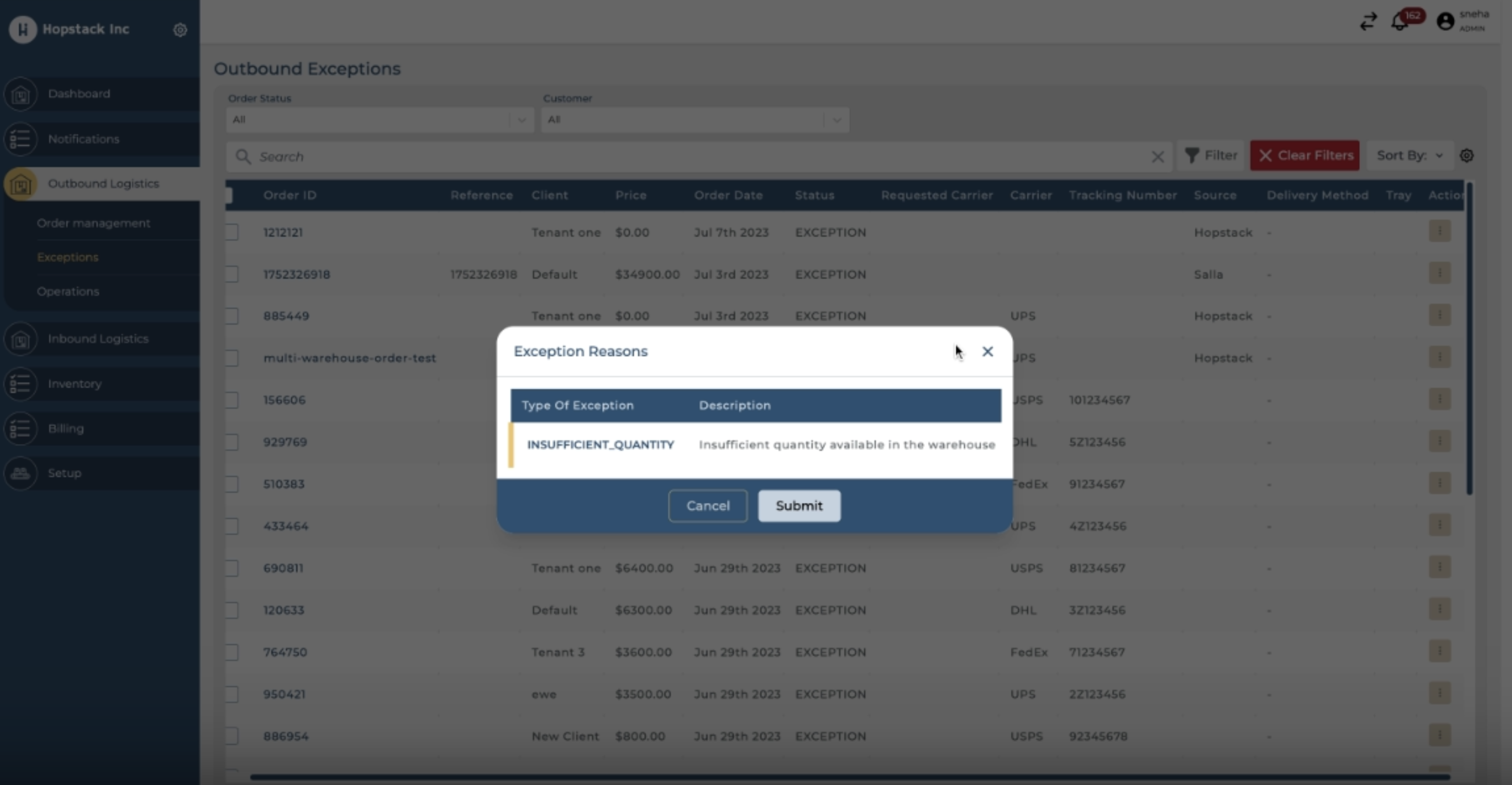 Note: It's essential to regularly check the exceptions screen, especially during high order volume periods, to ensure timely fulfillment and high customer satisfaction.
