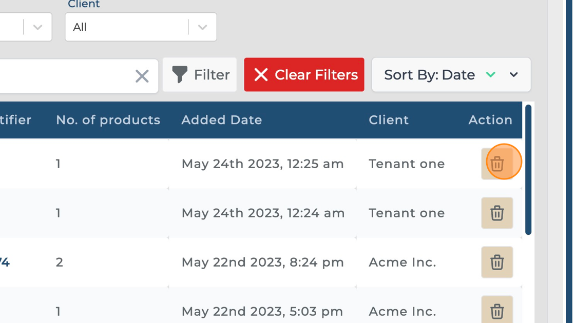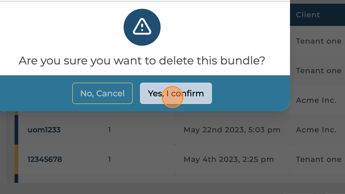 Click the bucket icon against the bundle you want to delete.