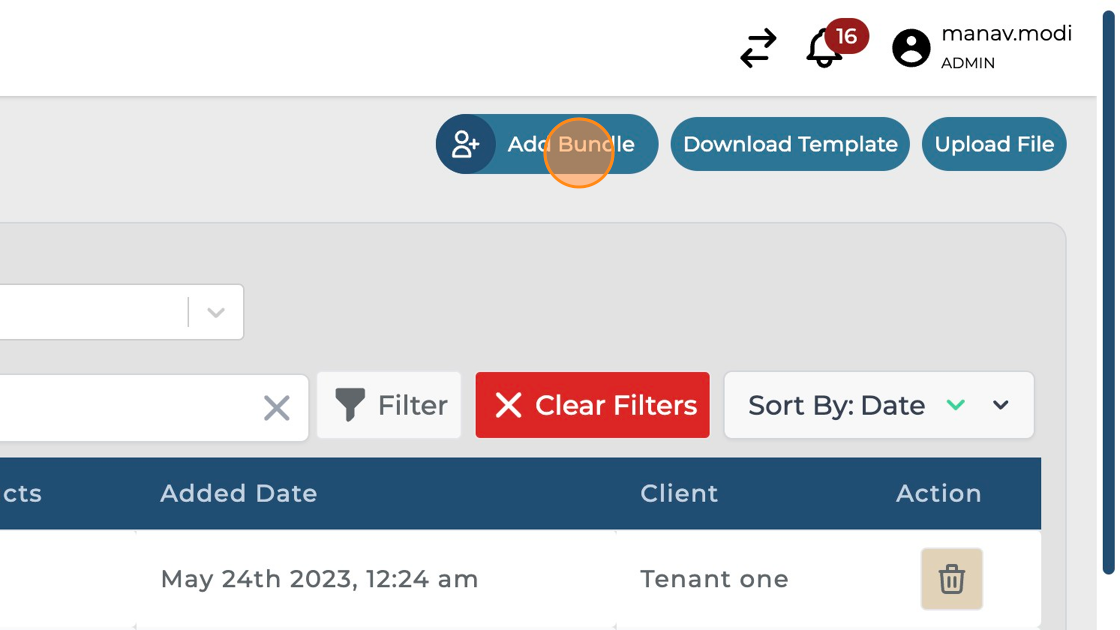 Select the bundle management option under Setup from the side menu. Then click on the "Add Bundle" button to create new bundle.