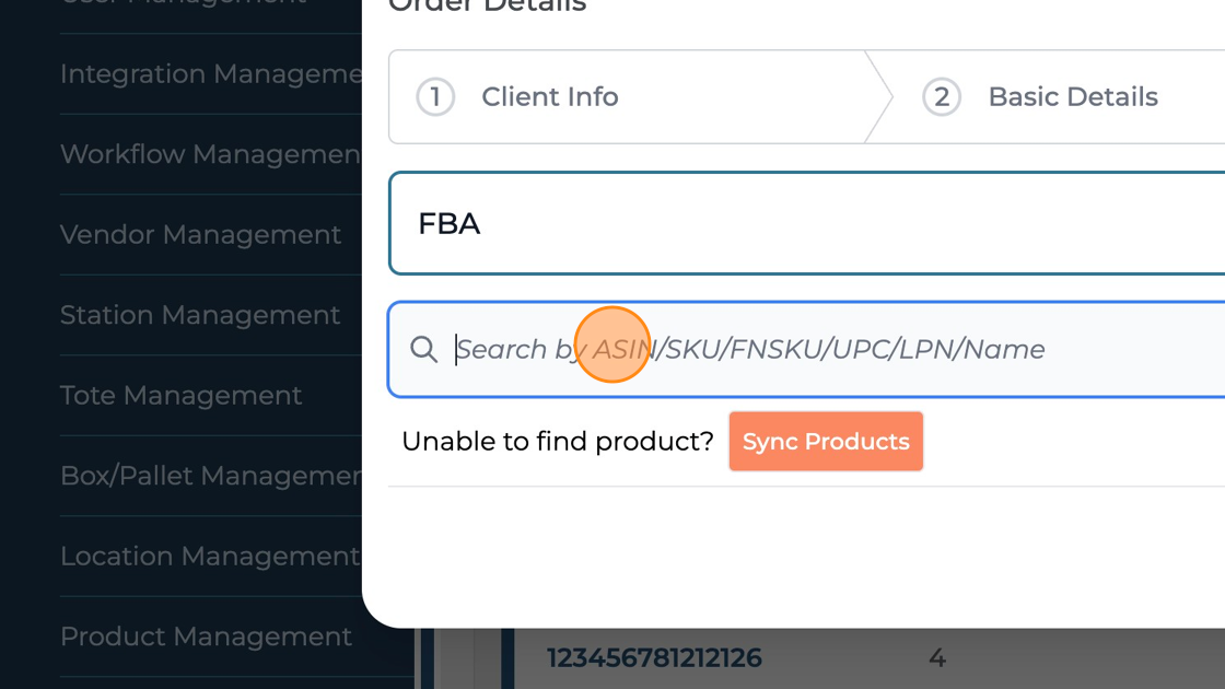 Use the "Search" field to search for products based on ASIN/ SKU/ FNSKU/ UPC/ LPN/ Name.