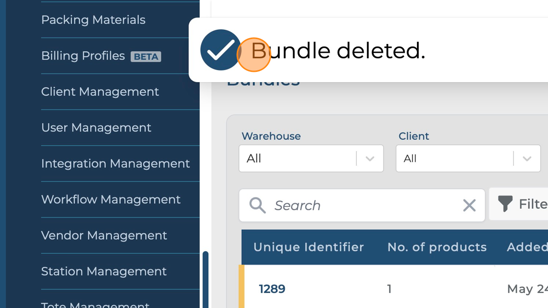 The hopstack platform shows the "Bundle deleted." message confirming the change.
