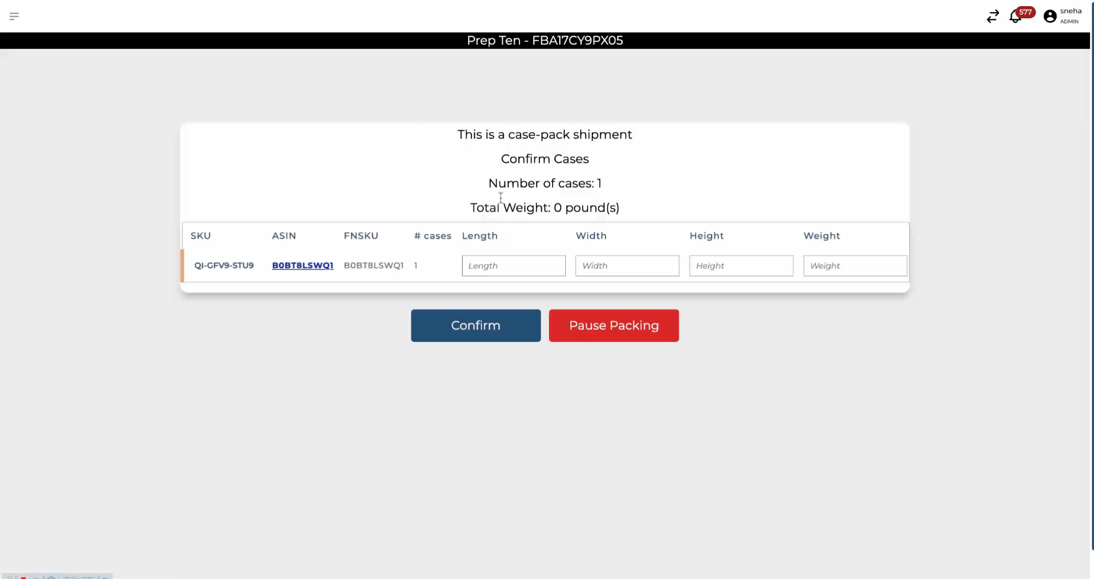 Packers are expected to type in the box dimensions and weight for each SKU.