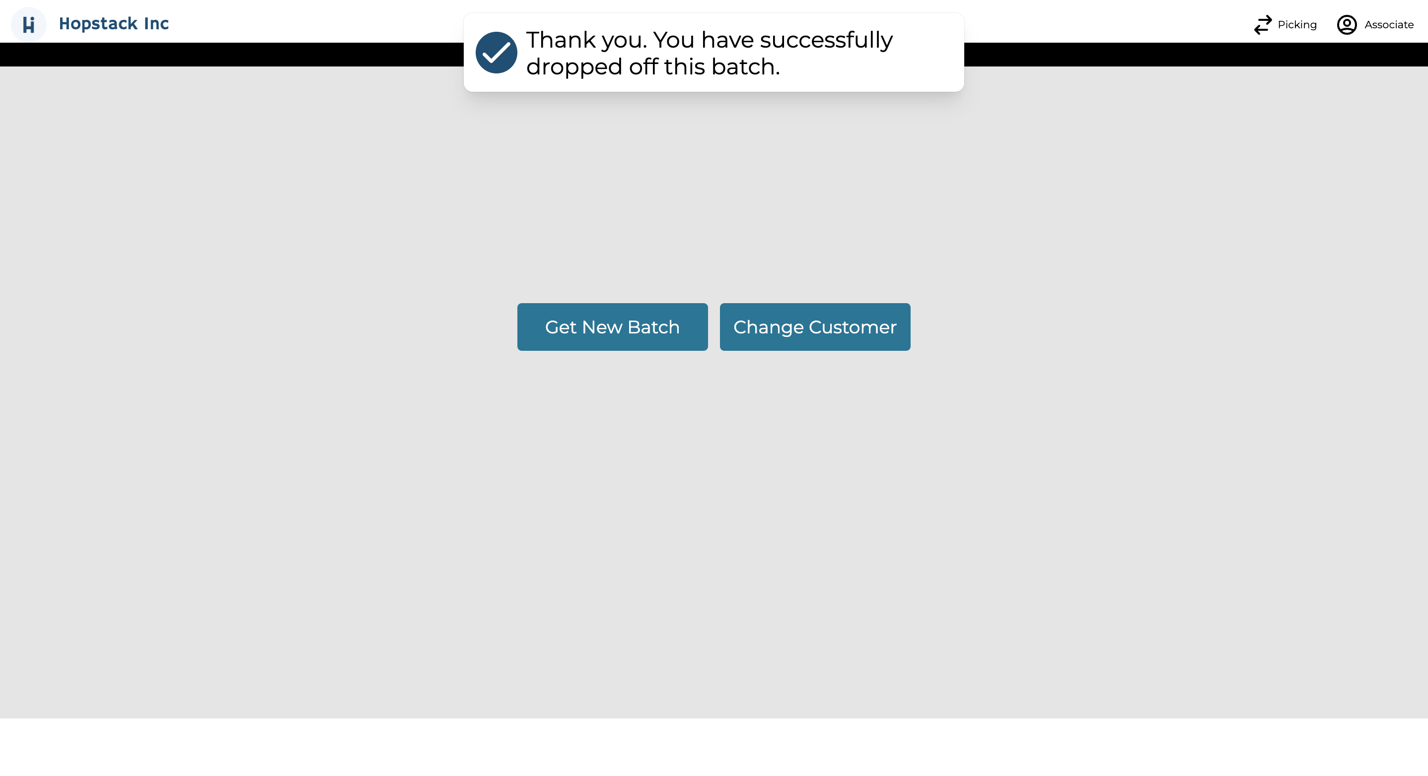 Return For New Batch: After confirming the drop-off, you will be automatically redirected to start a new batch or change the customer you want to Pick for.
