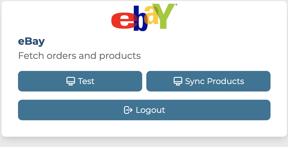 Test - This button will test your integration with eBay. It will fetch one product and its associated information to test if the connection was successful. If this test fails, please Logout and try the process again.