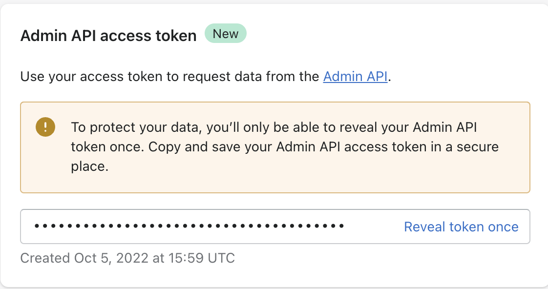 Shopify Admin API Access Token - Admin API Access Token retrieved from Shopify