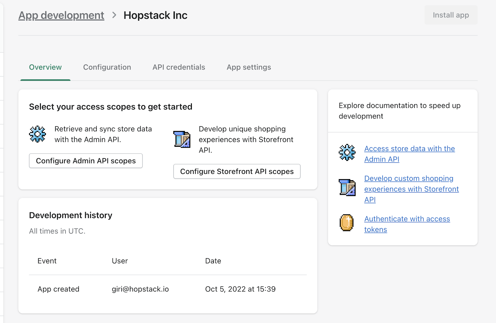 5. Click on “Create App” and enter the App name as “Hopstack” and click “Create App”
