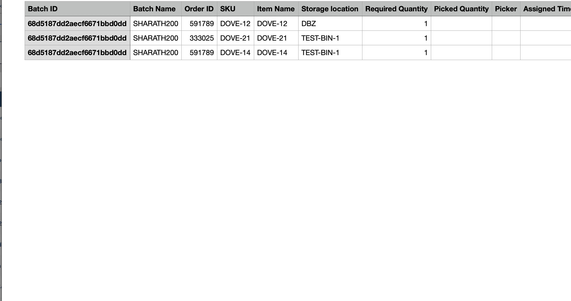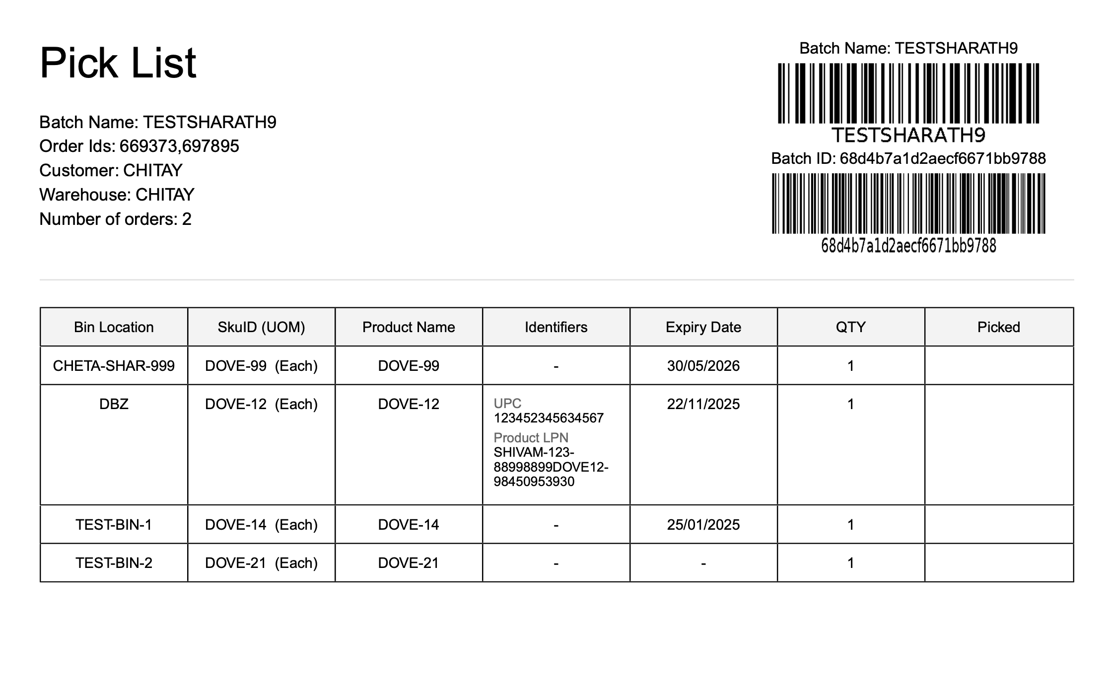 Sample of Picking Batch List