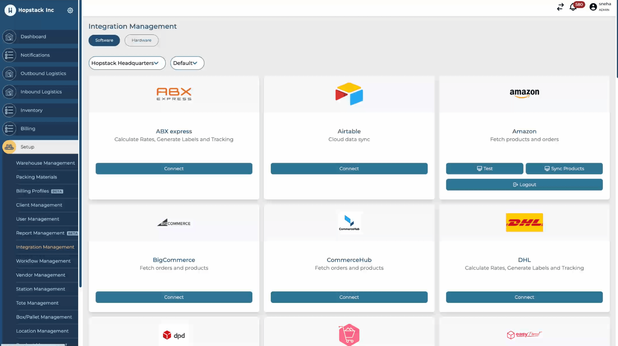 This signifies that the integration is connected and active for the chosen client and warehouse.