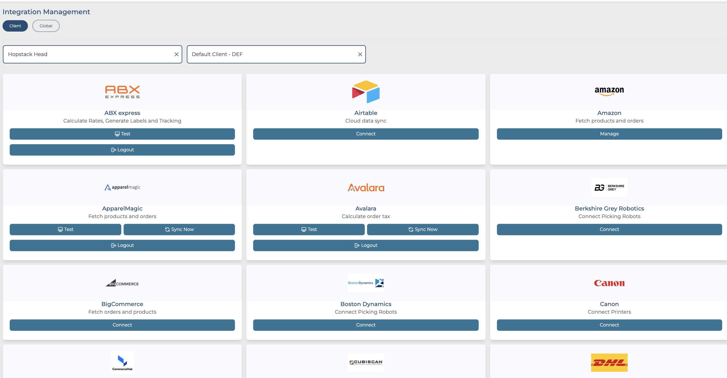 Once the necessary credentials are added in the Global tab please navigate to the Client tab to add the integration for a single client.