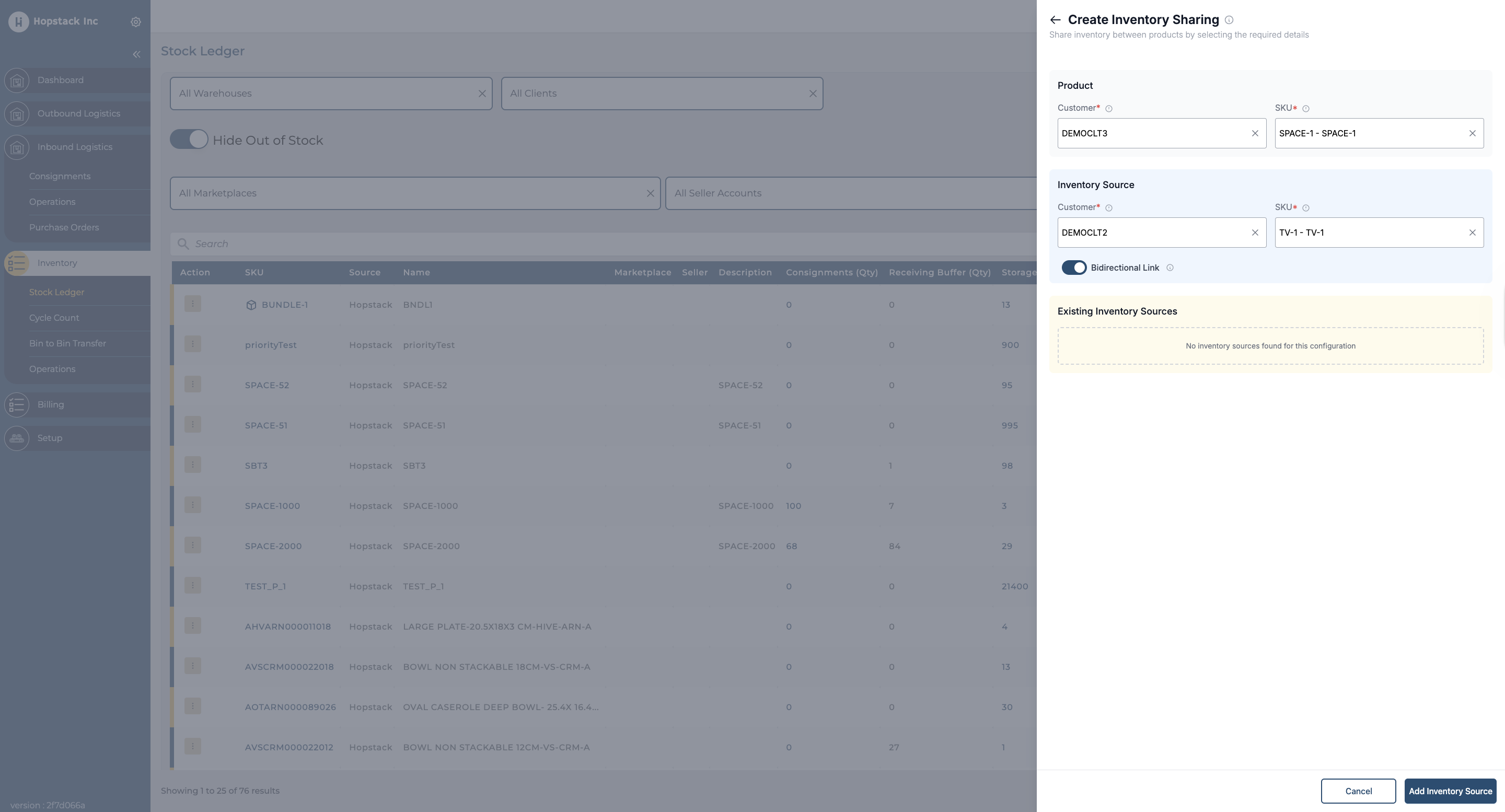 Select the customer and product for which you want the inventory sharing