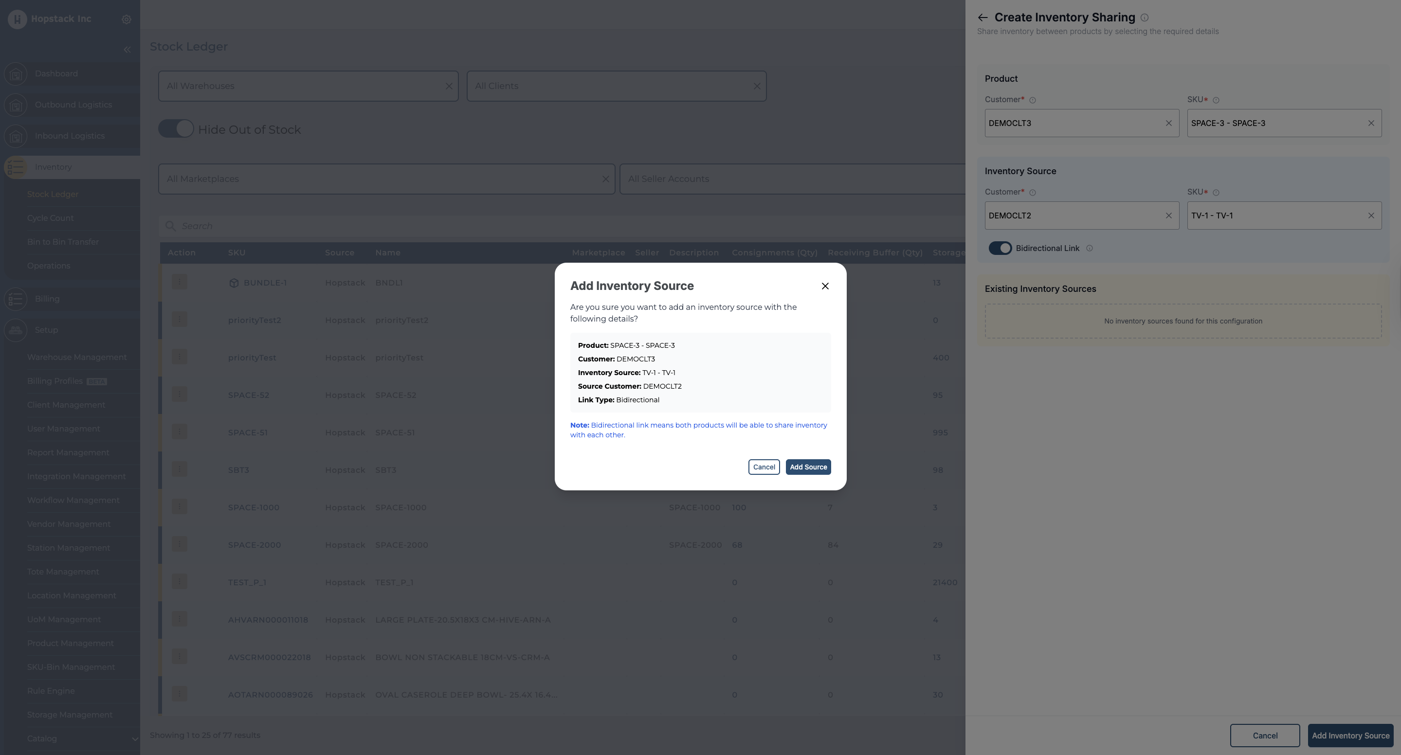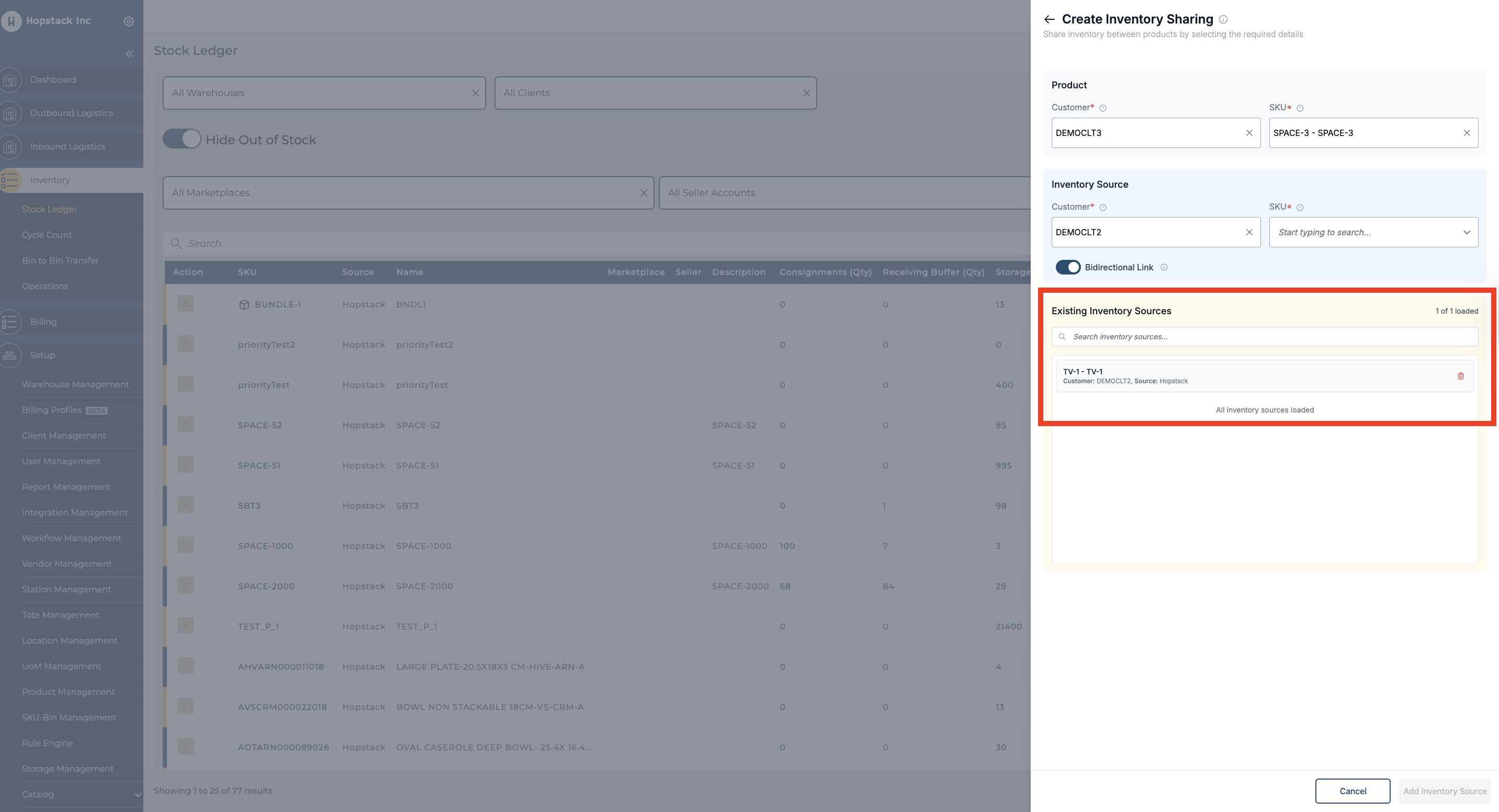 The above process ensures that the inventory sharing will happen from TV-1 to SPACE-1 if a bi-directional link is not enabled. If the Bi-directional link is enabled, the sharing will happen between both products.