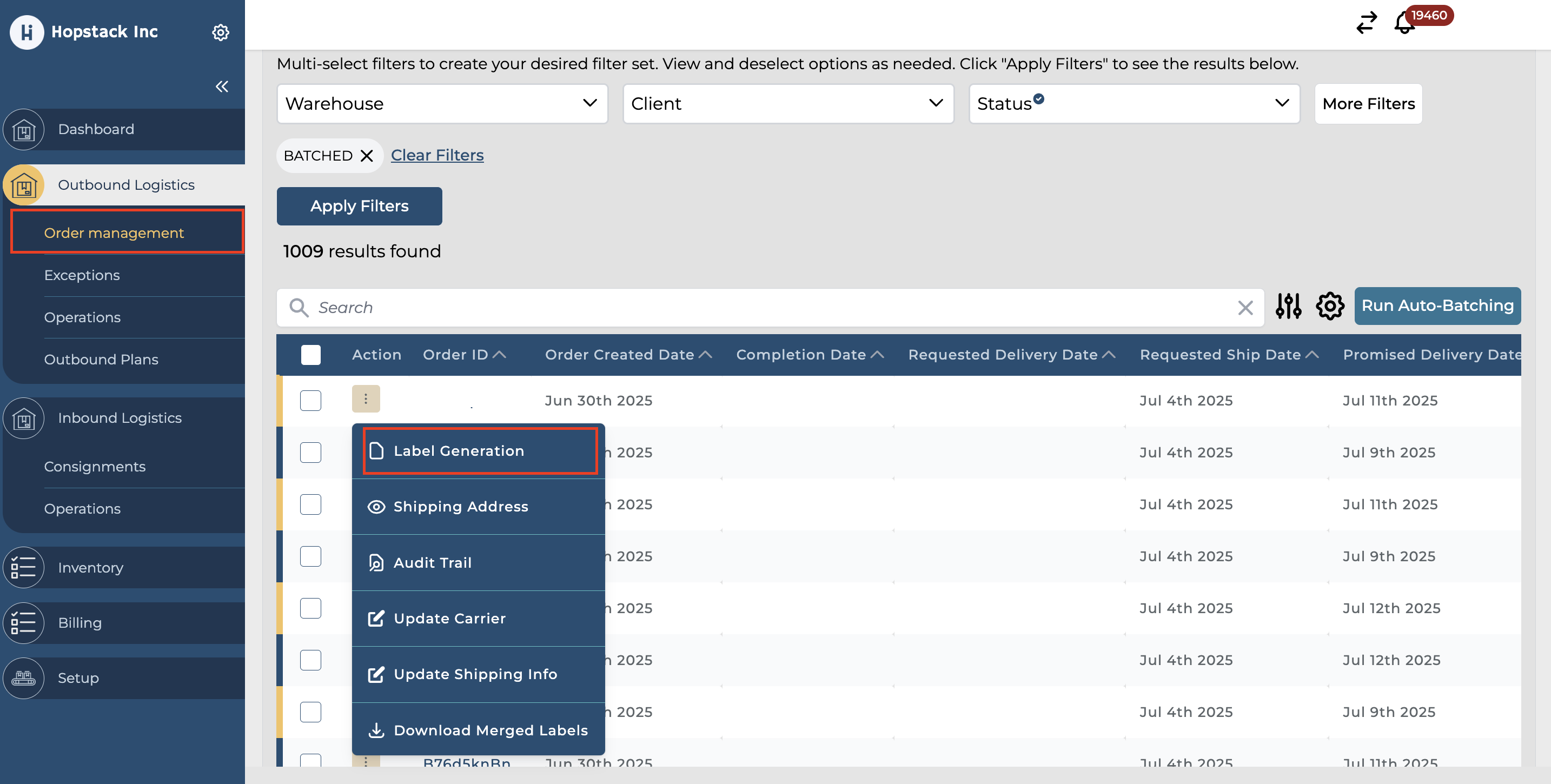 This guide outlines how to generate labels for your orders through both the Operations and Order Management screens under the Outbound Logistics module.