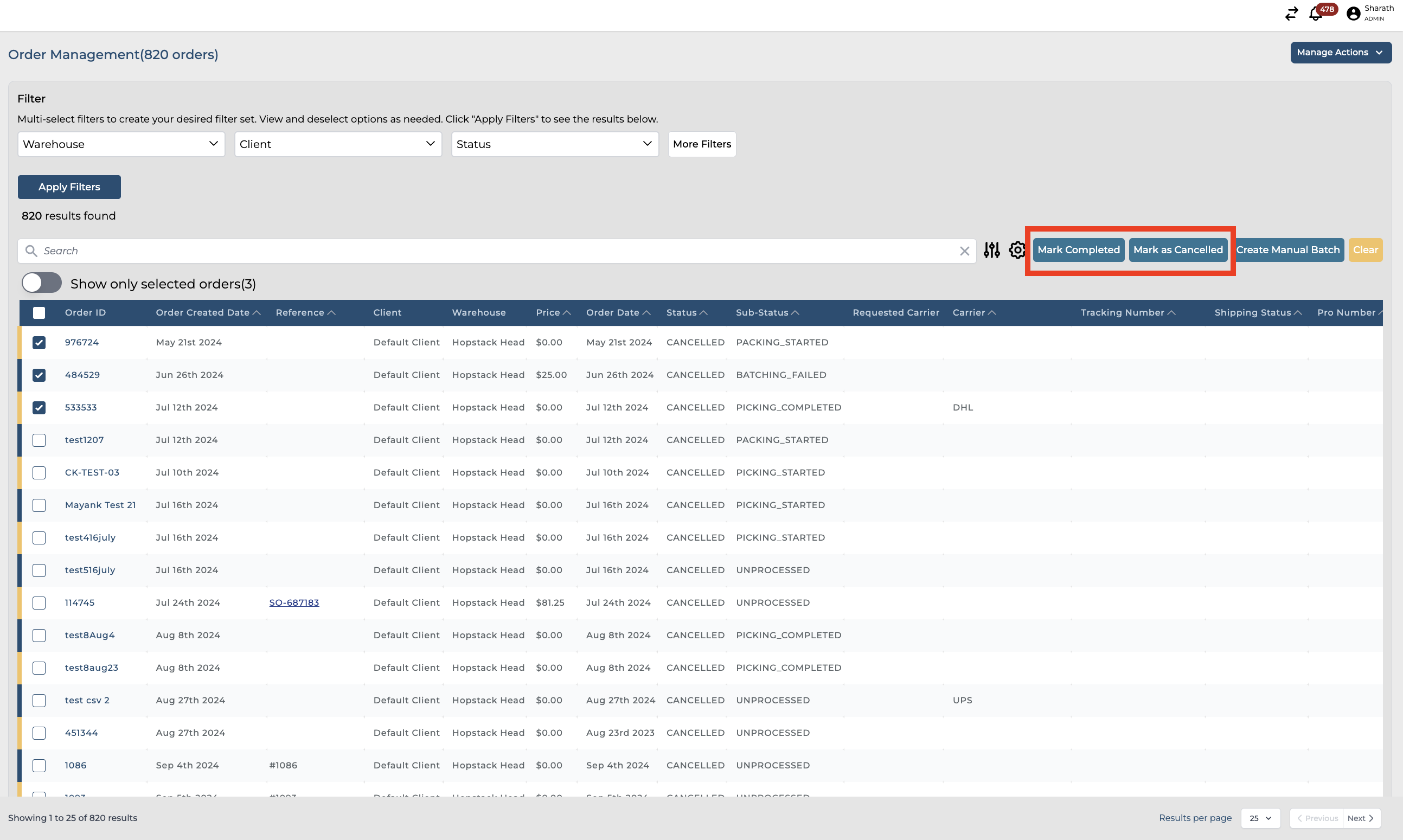 This document provides step-by-step instructions on how to mark the Orders as Cancelled/ Completed in Bulk