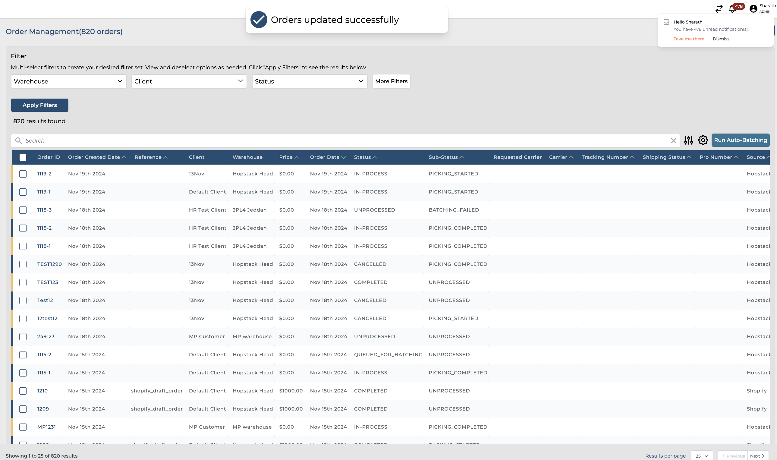 Click on “Yes, I Confirm” to proceed further with the Cancellation or Completion of an order. A notification is displayed stating the order updated successfully.