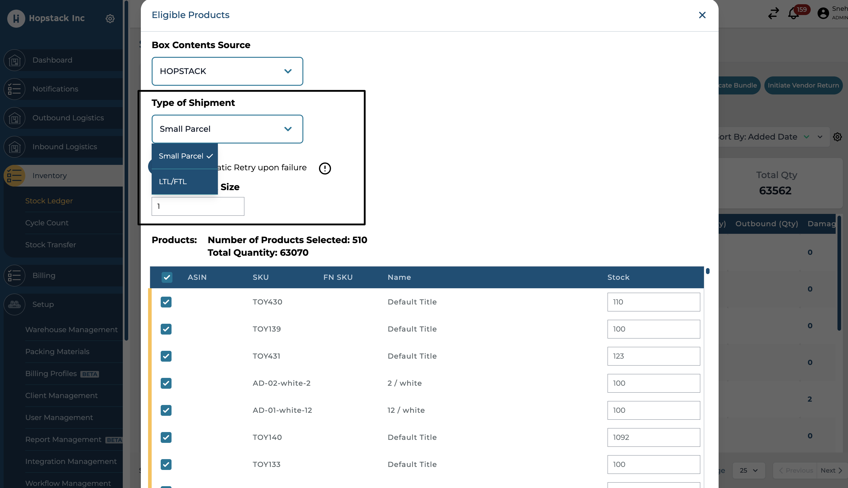 Select the items from your inventory based on the created shipment plan.