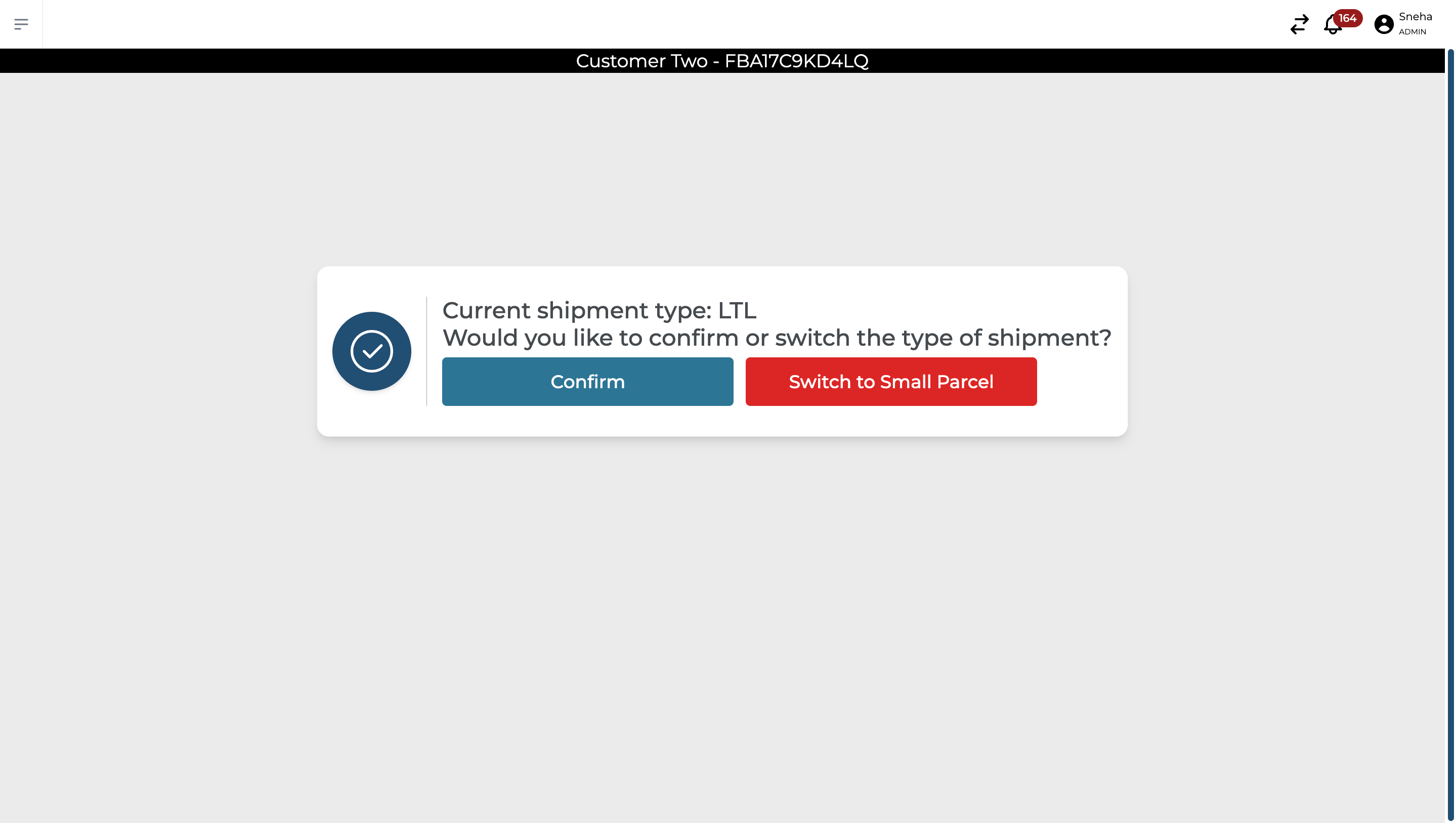 You will be prompted to specify the shipment type: LTL or Small Parcel. Please choose LTL to go through with this workflow. If you switch to Small Parcel, the standard packing workflow will be triggered.