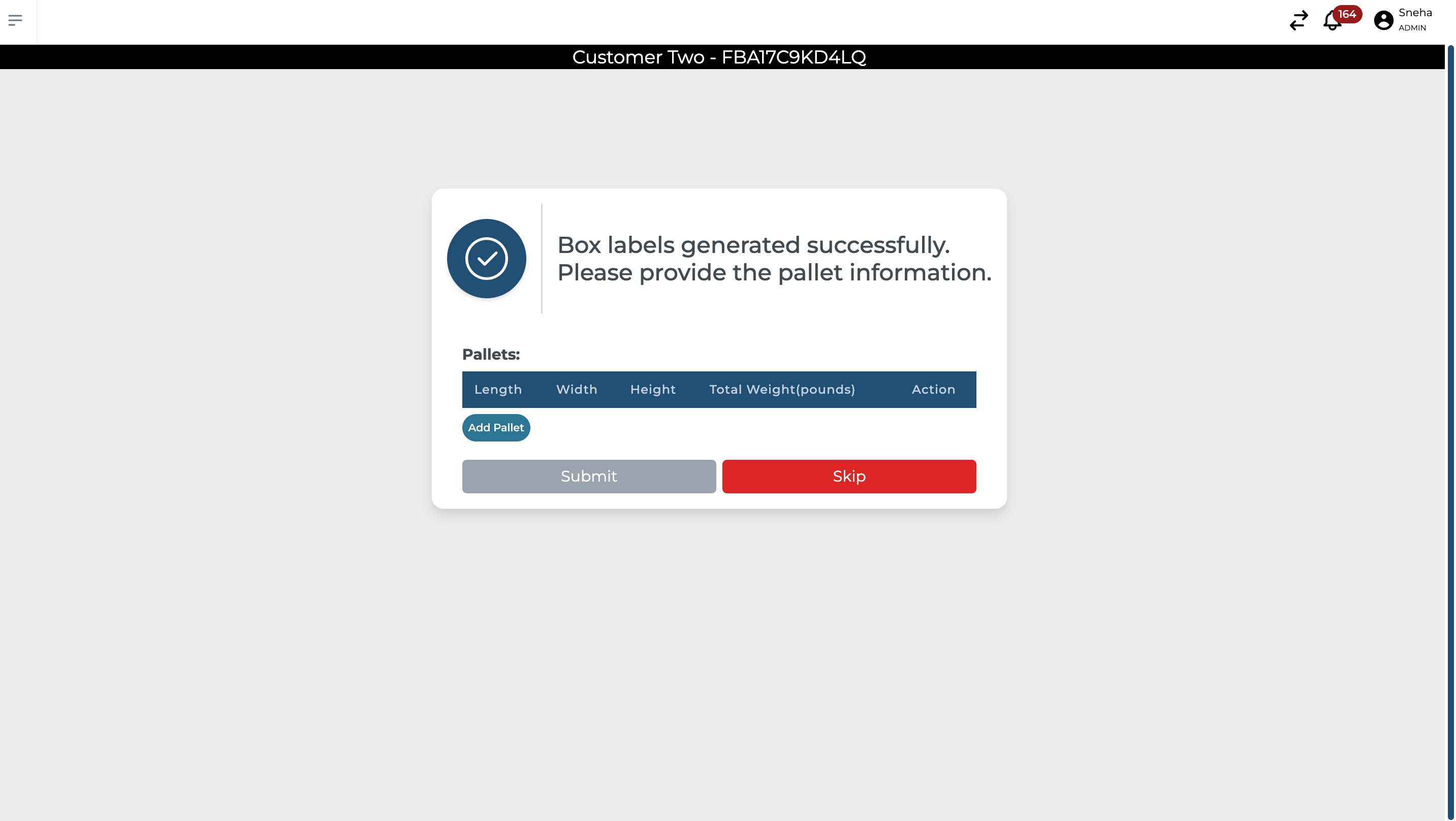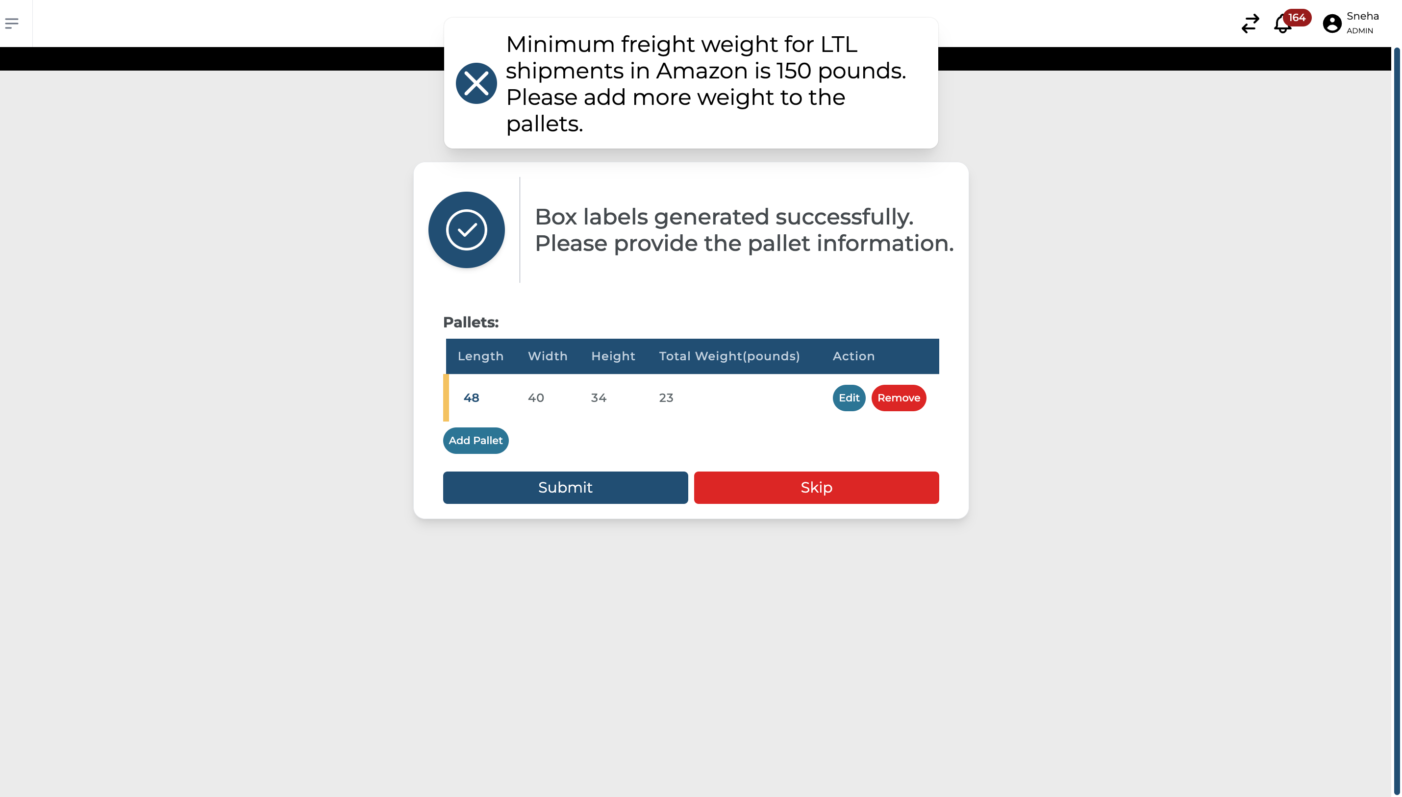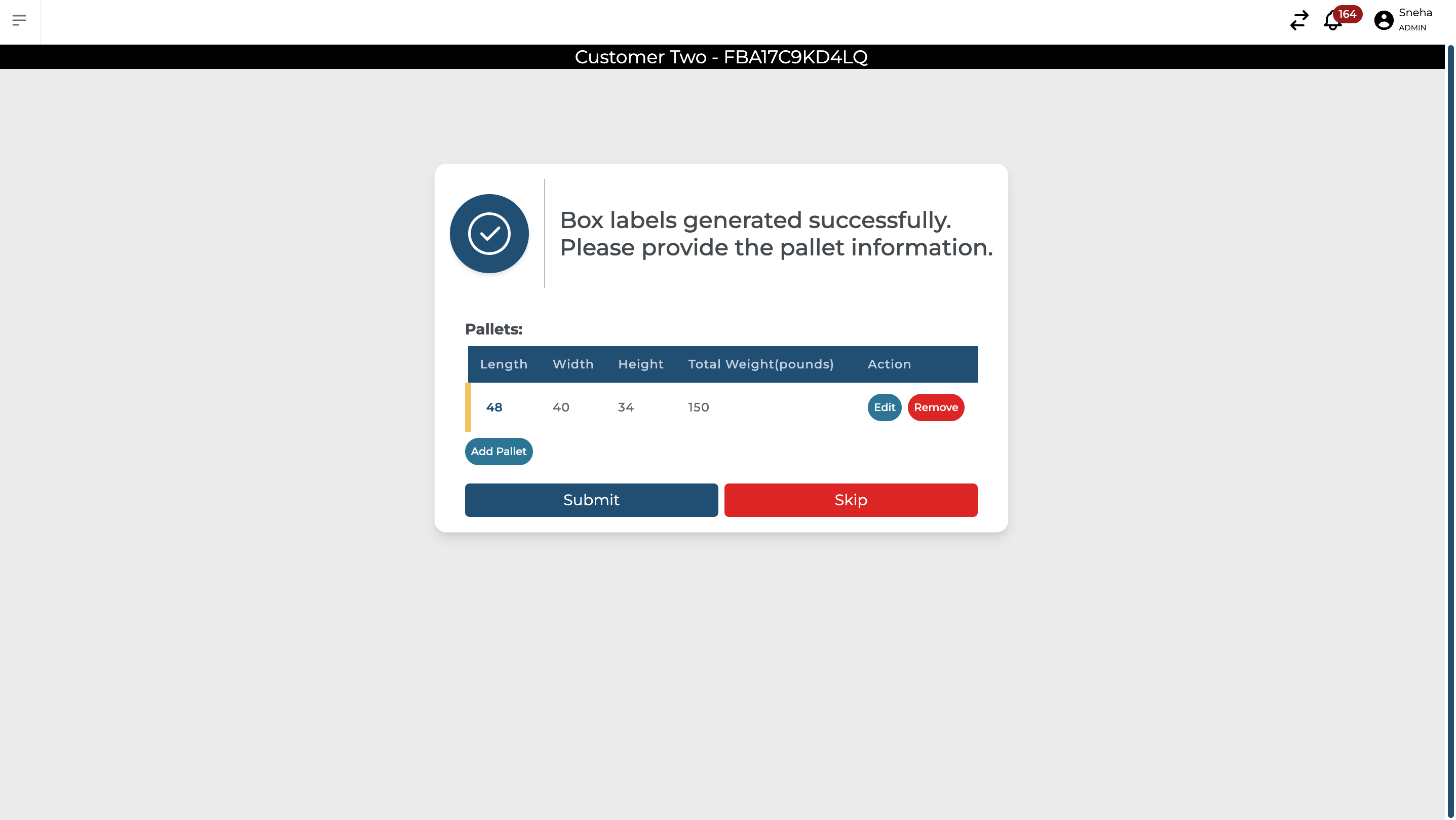 After confirming the pallet information, both pallet and shipping labels will be generated.