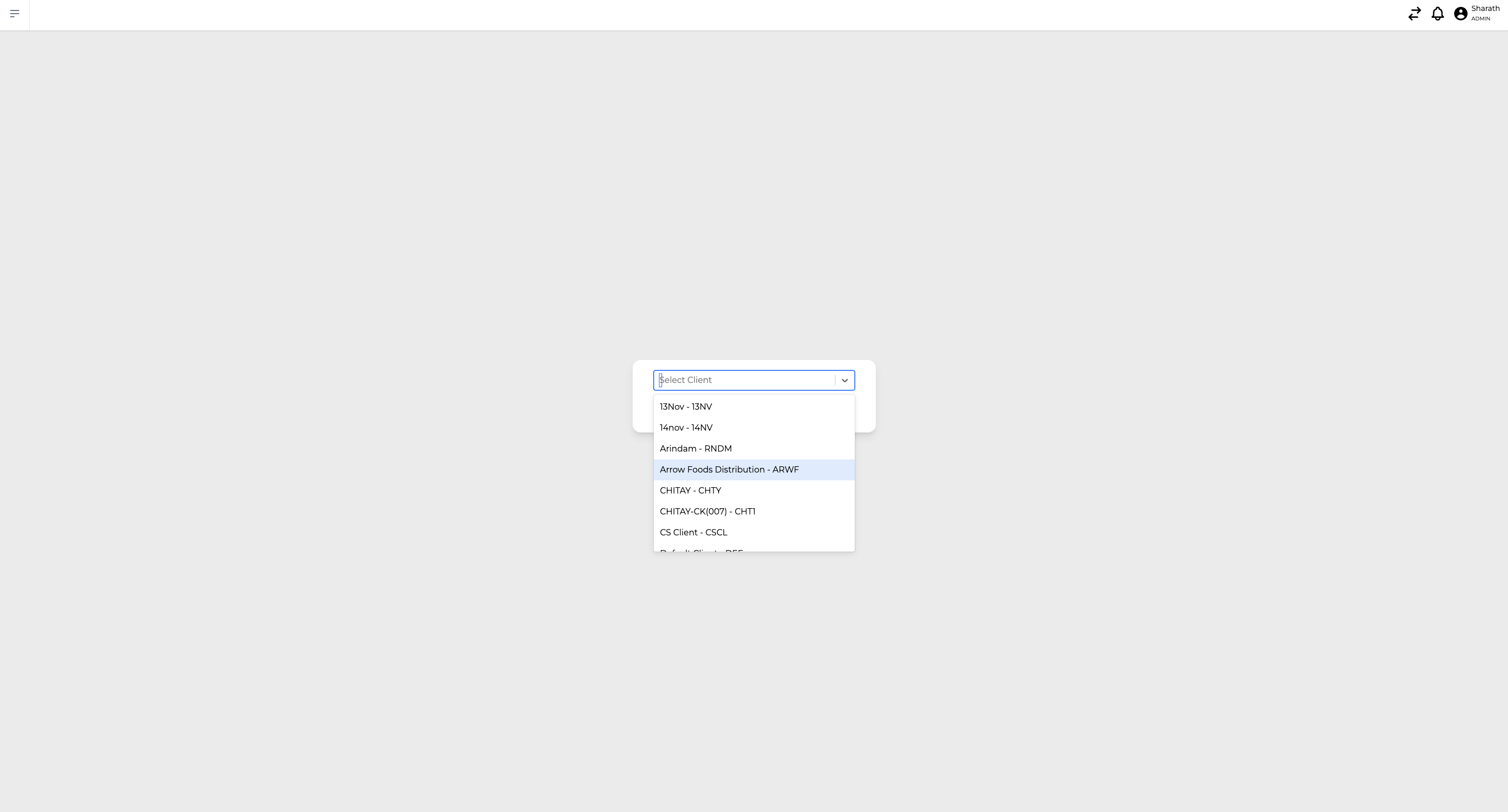 On this screen, you will see a searchable dropdown component that allows you to select a client.