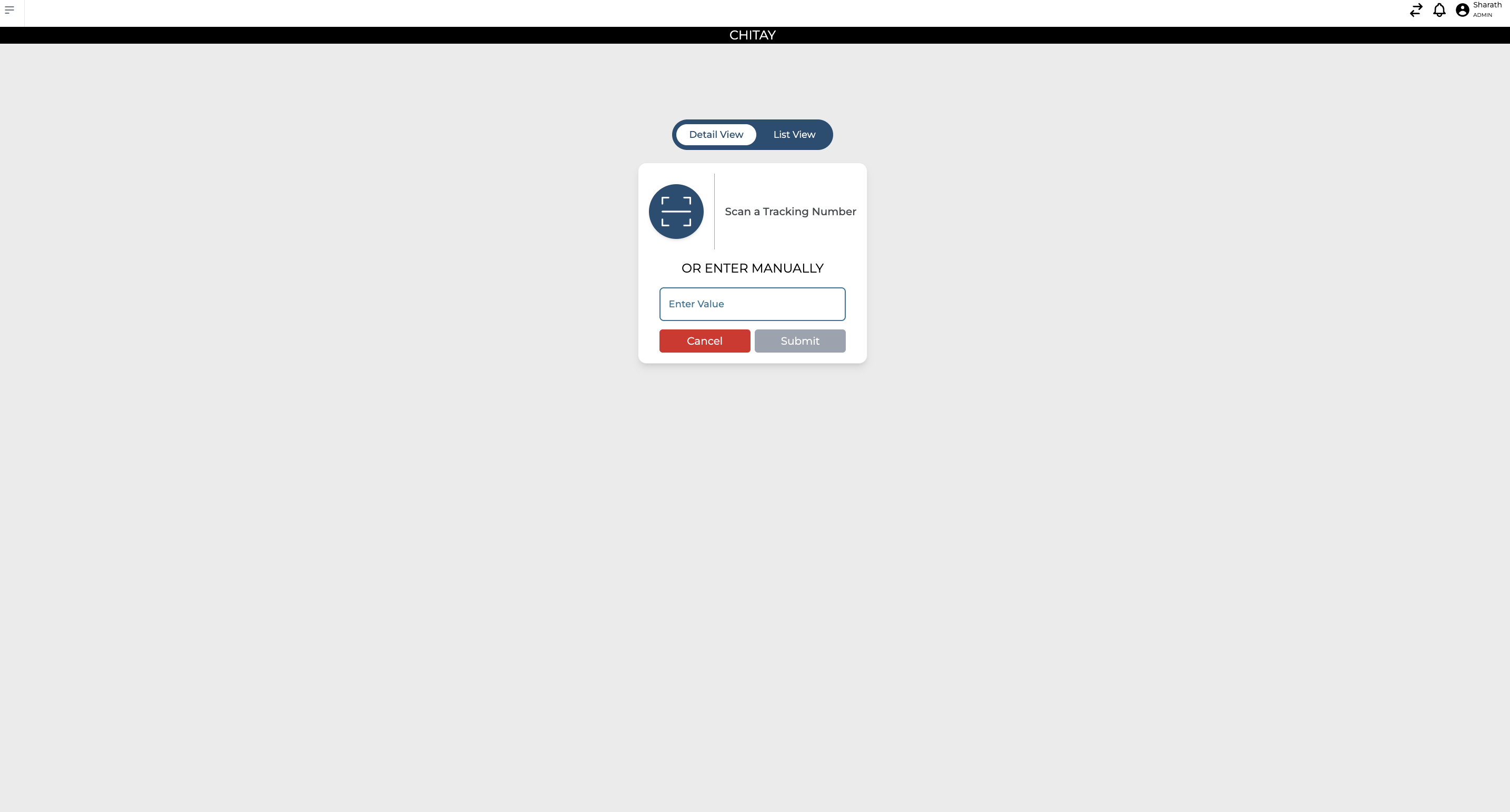 There is a detail view and a list view. In the detail view, the user can scan the tracking number for the consignment that they would like to receive, and the list view shows the list of all open consignments that are waiting to be received where the user can click on “Work on this” button to start receiving a particular consignment.