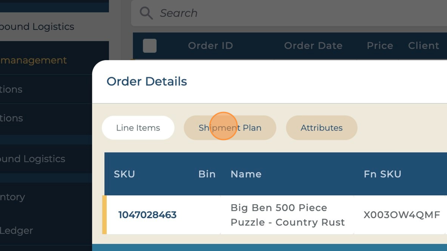 Click on "Shipment Plan" to view the shipment details of the chosen order.