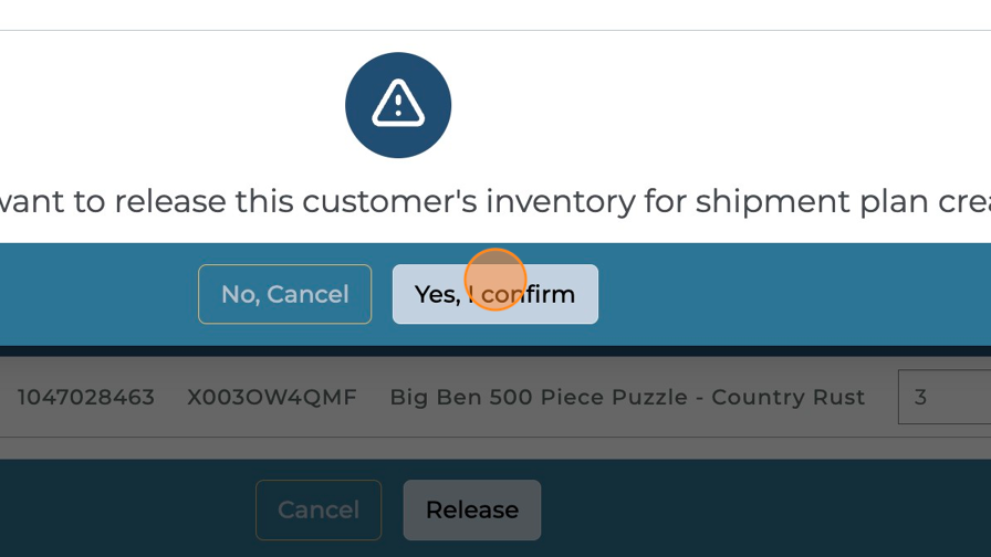 Click "Release" to initiate the inventory release process.