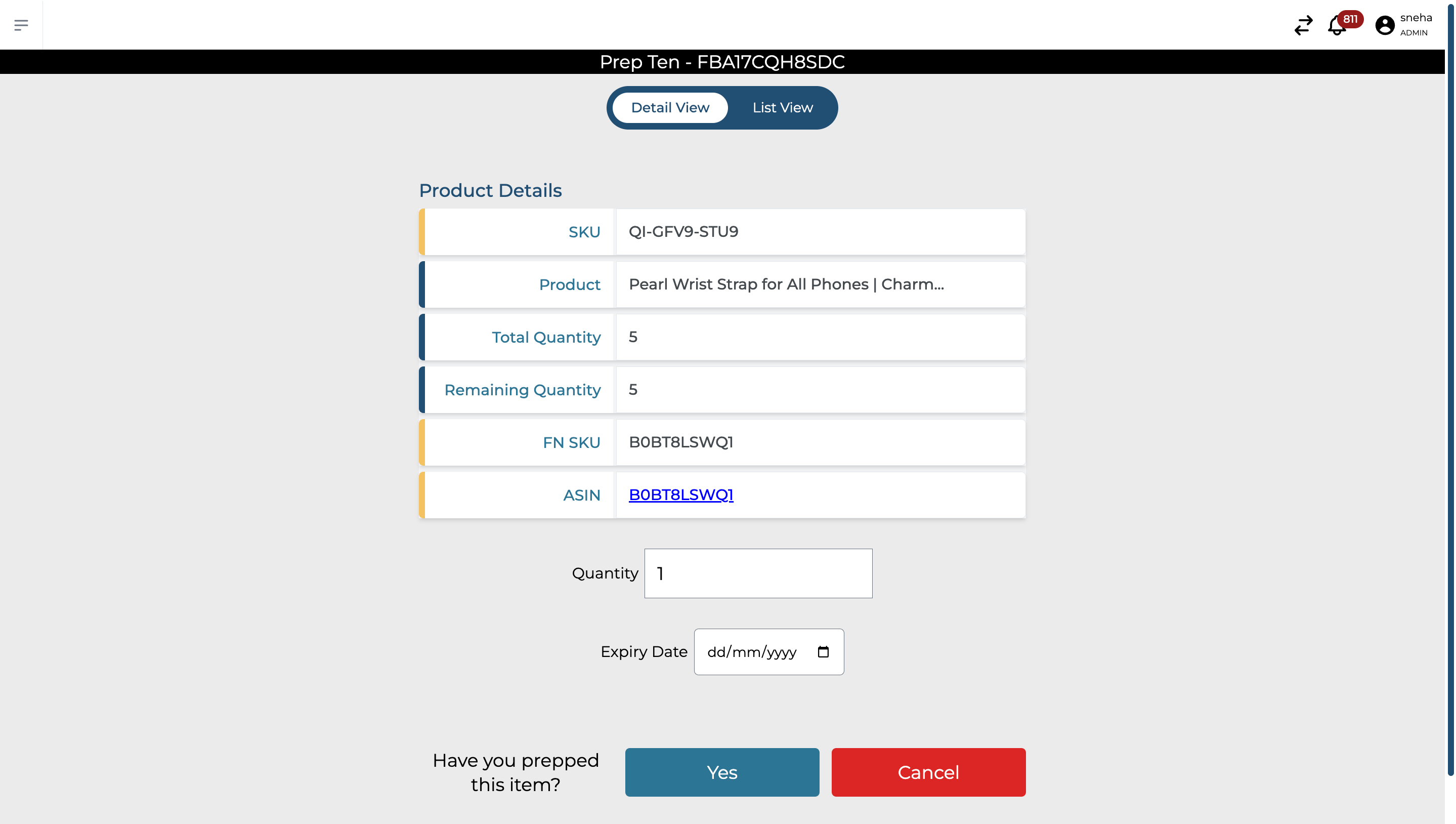 Remaining Quantity: Displays the number of units that are yet to be prepped.