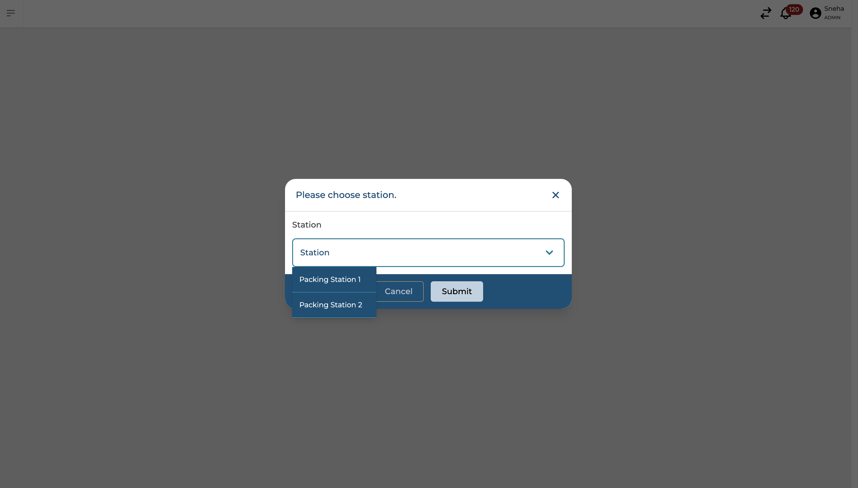 Browse through the list and select an available packing station by clicking on it. If you've been assigned a specific station, you will be seeing the same station.