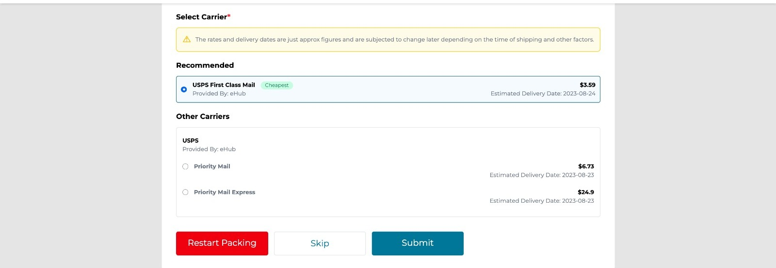 Submit Packing Details: The platform automatically receives shipping rates from a broad spectrum of carriers, including Amazon-partnered ones(if applicable)