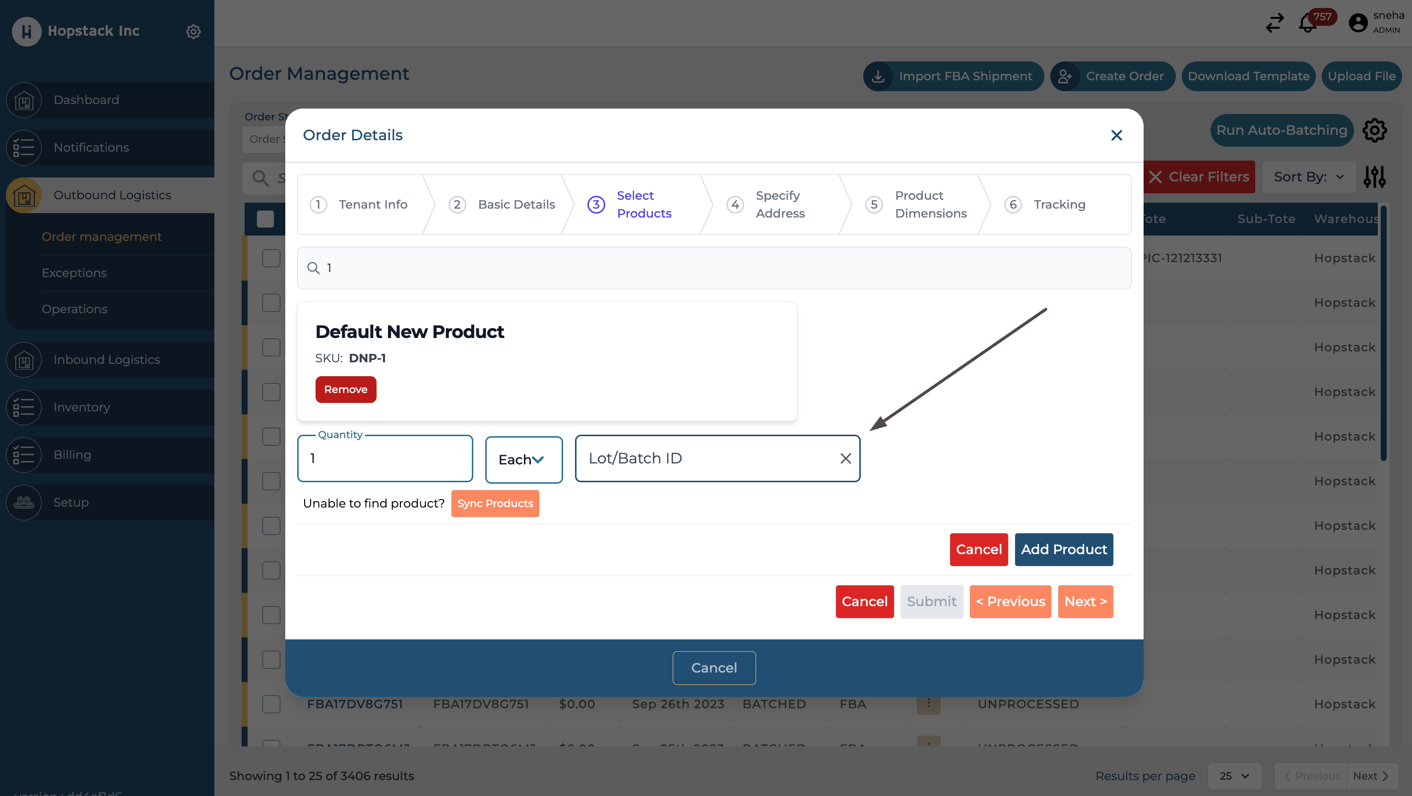Easily specify Lot ID when adding or editing orders. Dropdown available to fetch and choose from available lots per product.