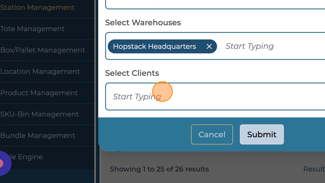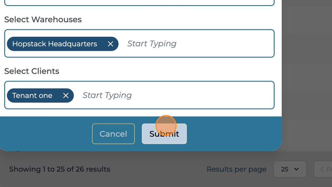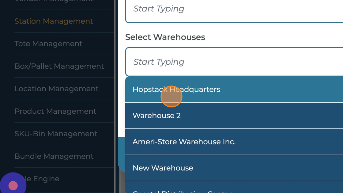 Click on the "Select Warehouses" dropdown menu to select the desired warehouse from the list of available warehouses.