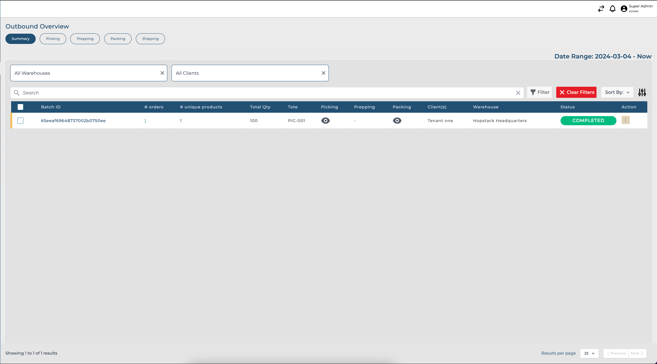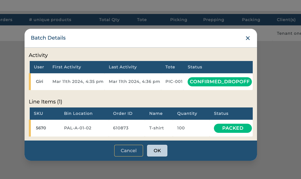 This consolidated view aims to allow operations team members to easily view and track the entire lifecycle of a batch and its orders, encompassing picking, prepping, and packing stages, in a single, intuitive interface.