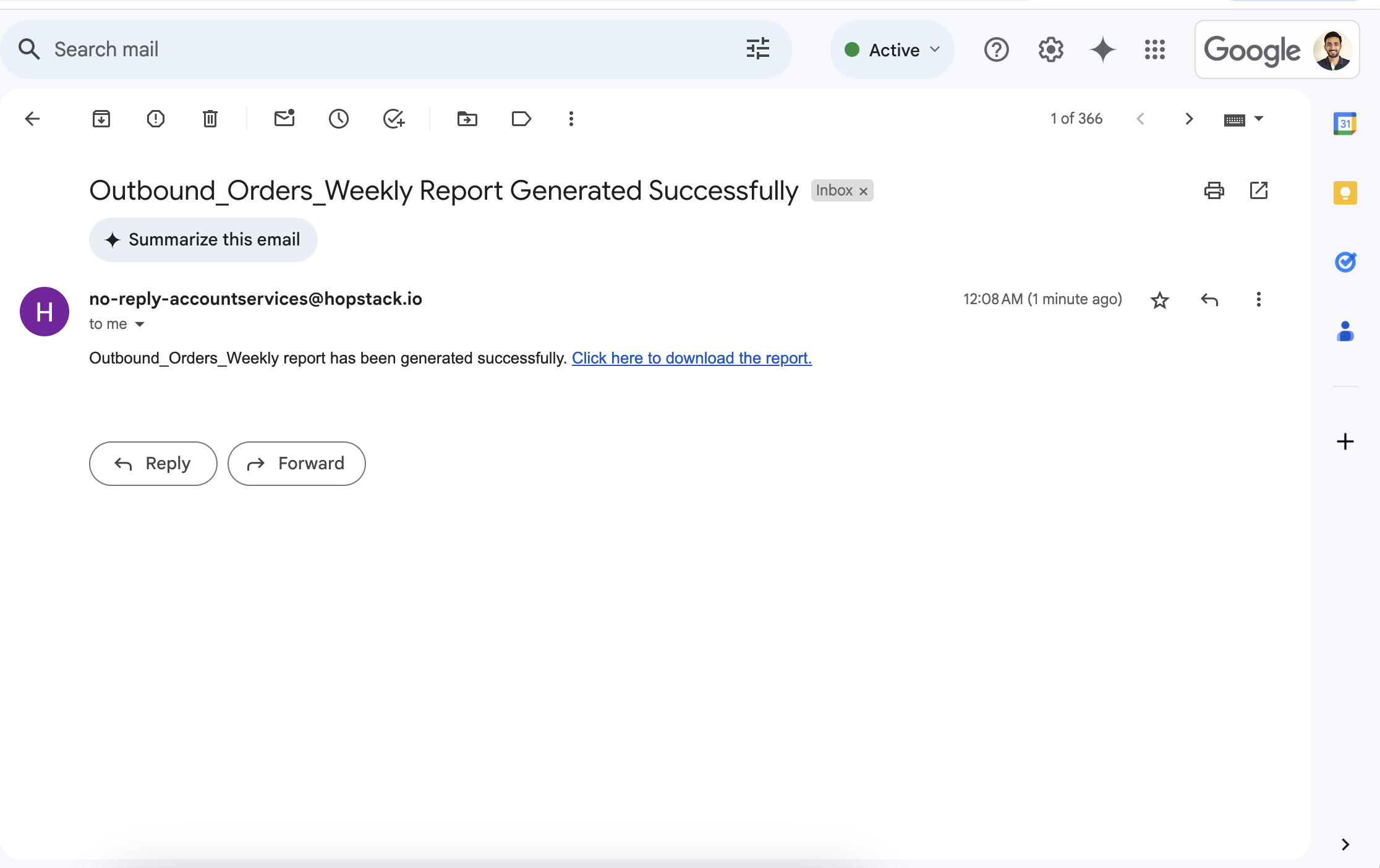 Below is an example of an Order Creation notification e-mail sent to the system-user.