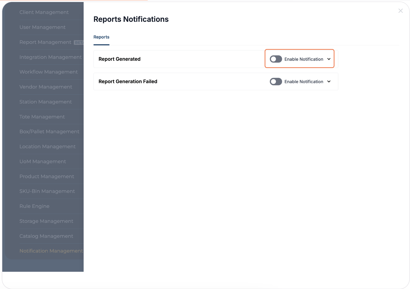 Click on "Notification Management"