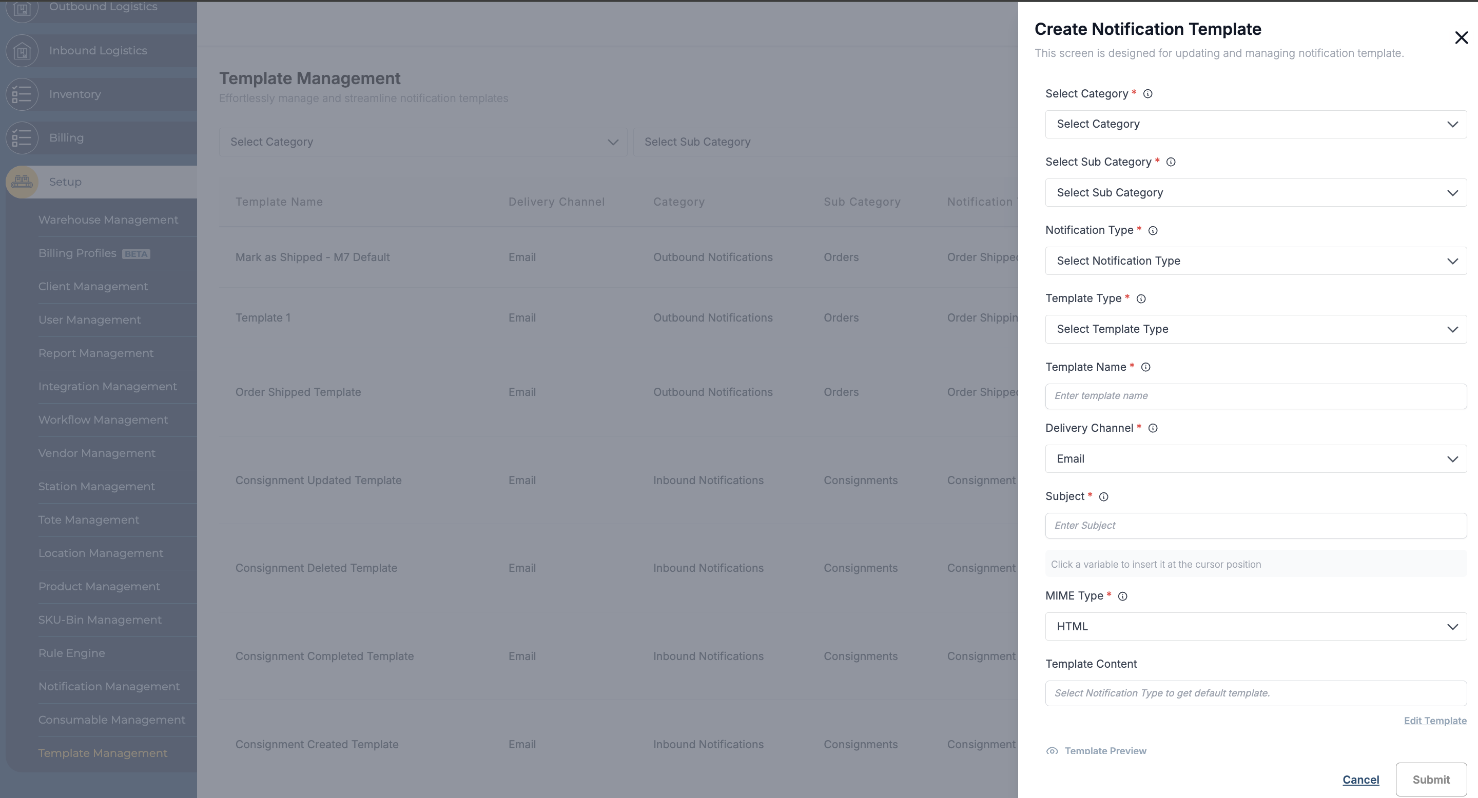 The Template Management feature in Hopstack allows you to create, customize, and manage notification templates across various categories like inbound, outbound, and order updates. These templates can be used for sending updates to consumers through channels like email.