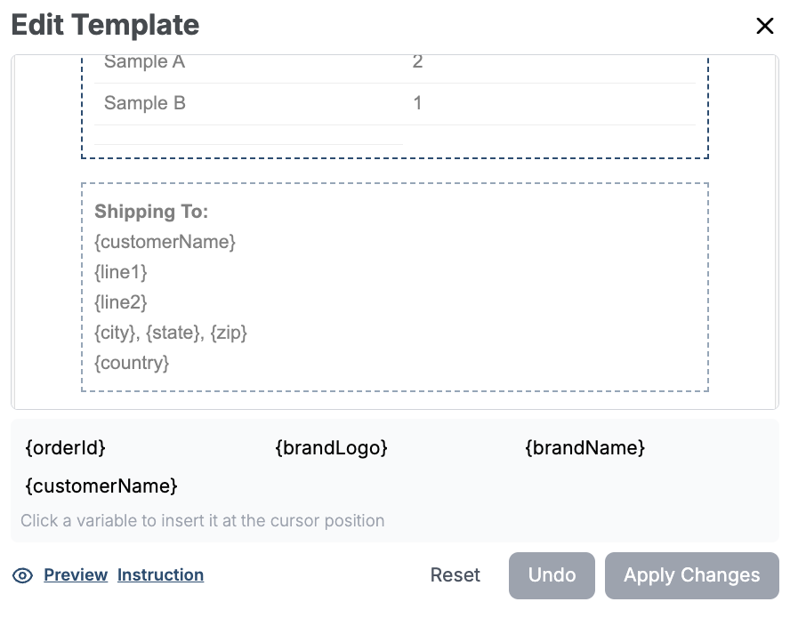 Insert dynamic variables (e.g., order ID, shipping carrier).