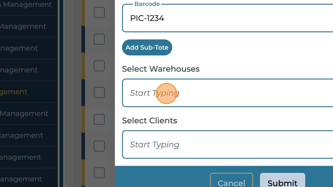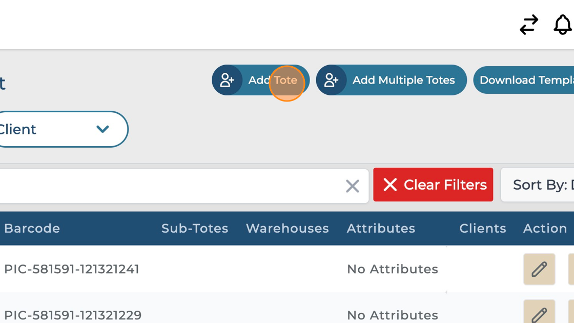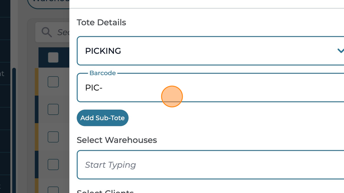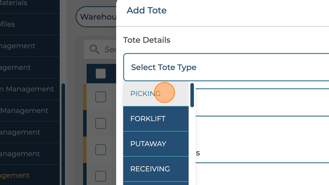 Click on the "Select Tote Type" drop-down menu to select the desired tote type.