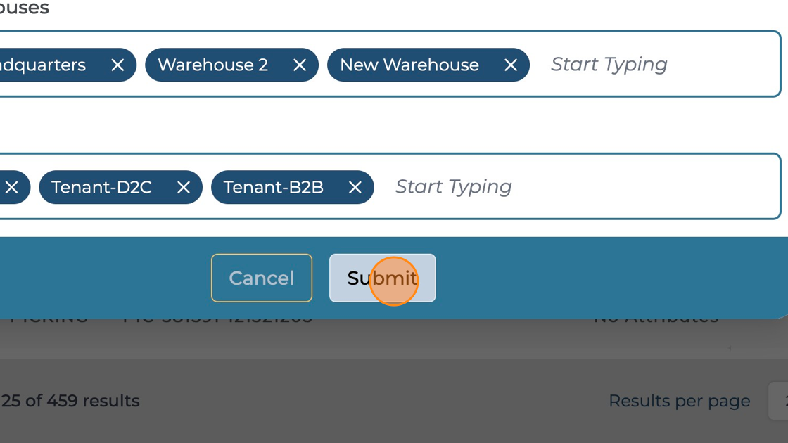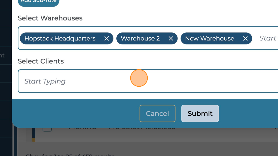 Click on the "Select Warehouses" field to select the desired warehouse(s).
