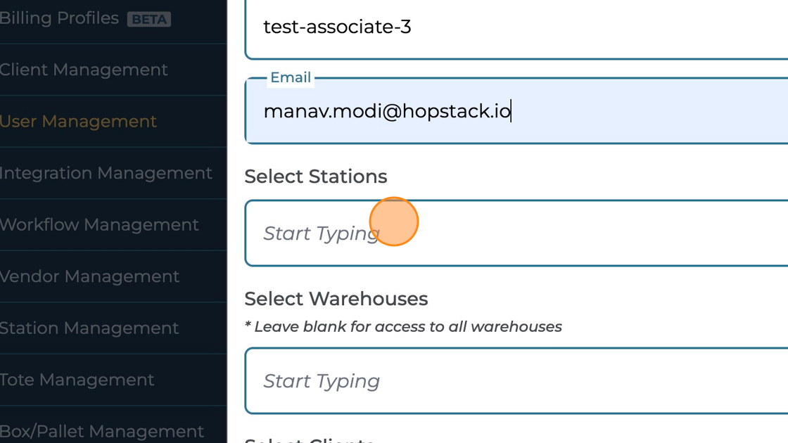 Click on the "Select Stations" field to select the desired station(s) you want to assign to the user. You can select multiple stations based on your requirement.