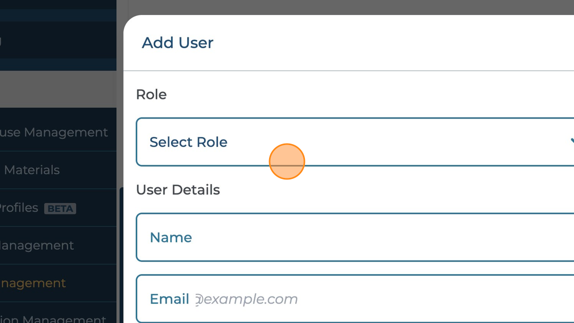 Click on the "Select Role" drop-down menu to select the type of user you want to add.