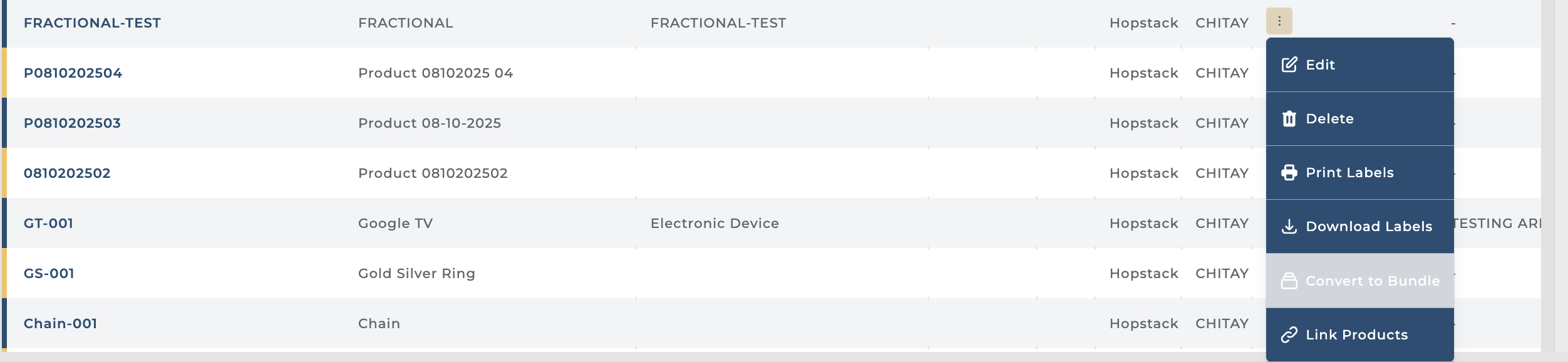 In case of a bundle, if Fractional Inventory is activated for a product, the “Convert to Bundle” option will be disabled
