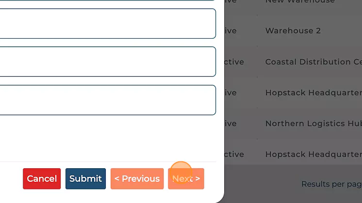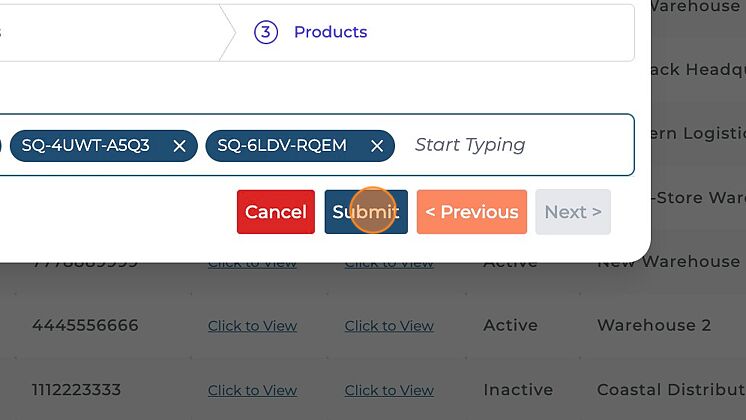 On the pop-up window that opens up, under "Warehouse Info" select the desired warehouse(s) from the drop-down menu.